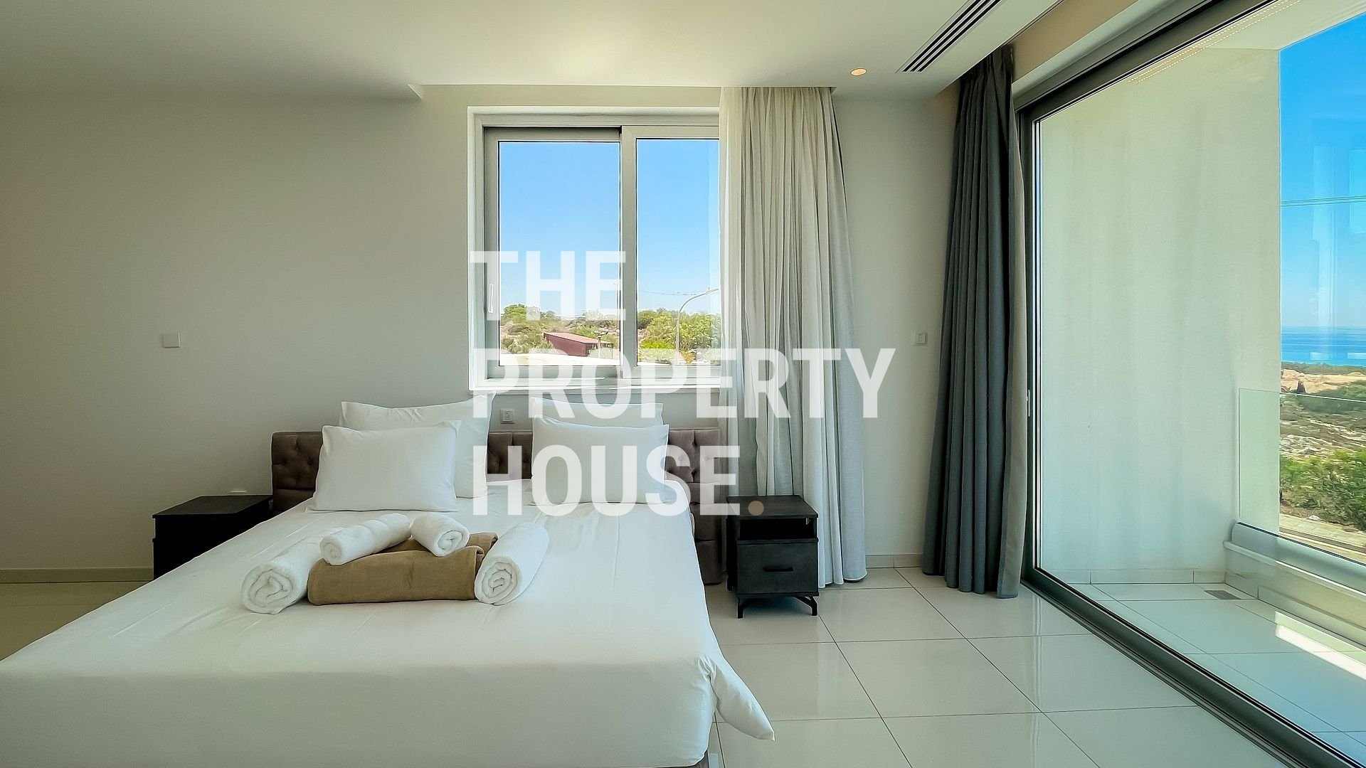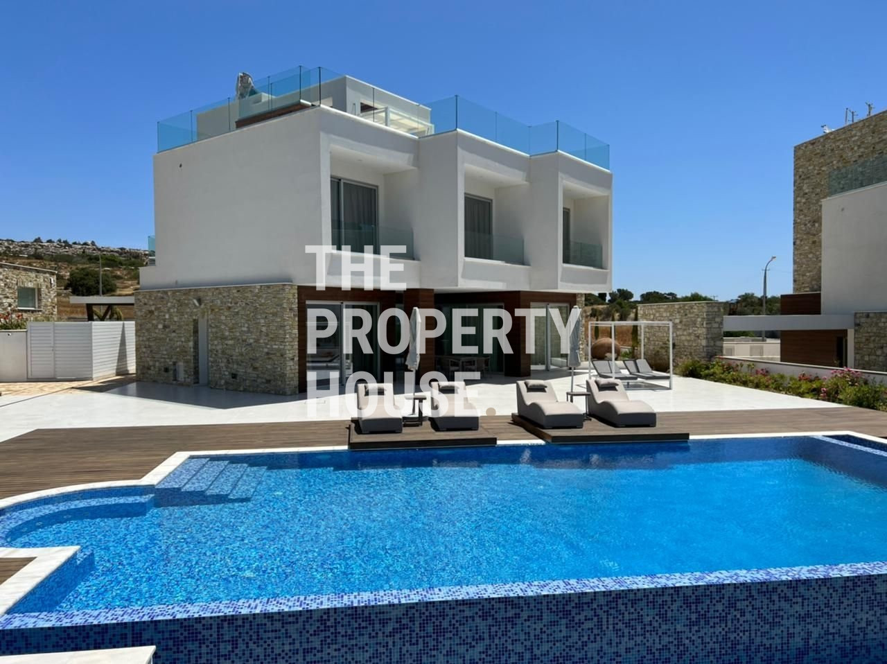 The Property House presents this 3 bedroom villa located just two hundered meters from the beach and just a short walk away from the town center of Ayia Napa. This allows you to easily switch between Ayia Napa’s vibrant seaside atmosphere and the natural surroundings of the villa. Its stone elements and HPL finishing touches blend in with its natural surroundings, while the large windows let in plenty of light. An expansive plot allows for a large garden and private pool. Whether inside or outside the villa, its elevated position provides the most stunning sea views on the island.