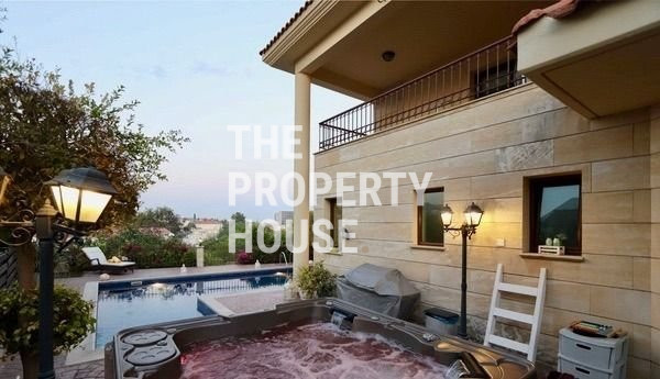 The residence is dressed with stone and features all the quality fixtures and fittings you would expect from a luxury home, including a title deed, full central heating, fully air-conditioned, an array of quality light fittings, Italian marble flooring, and double glazing throughout. The 700sq/m green area to the rear is planted with various fruit trees, including orange, lemon, fig, carob, and olive trees, and there's a 2800sq/m public park area to the rear of the property, complete with benches and shade.