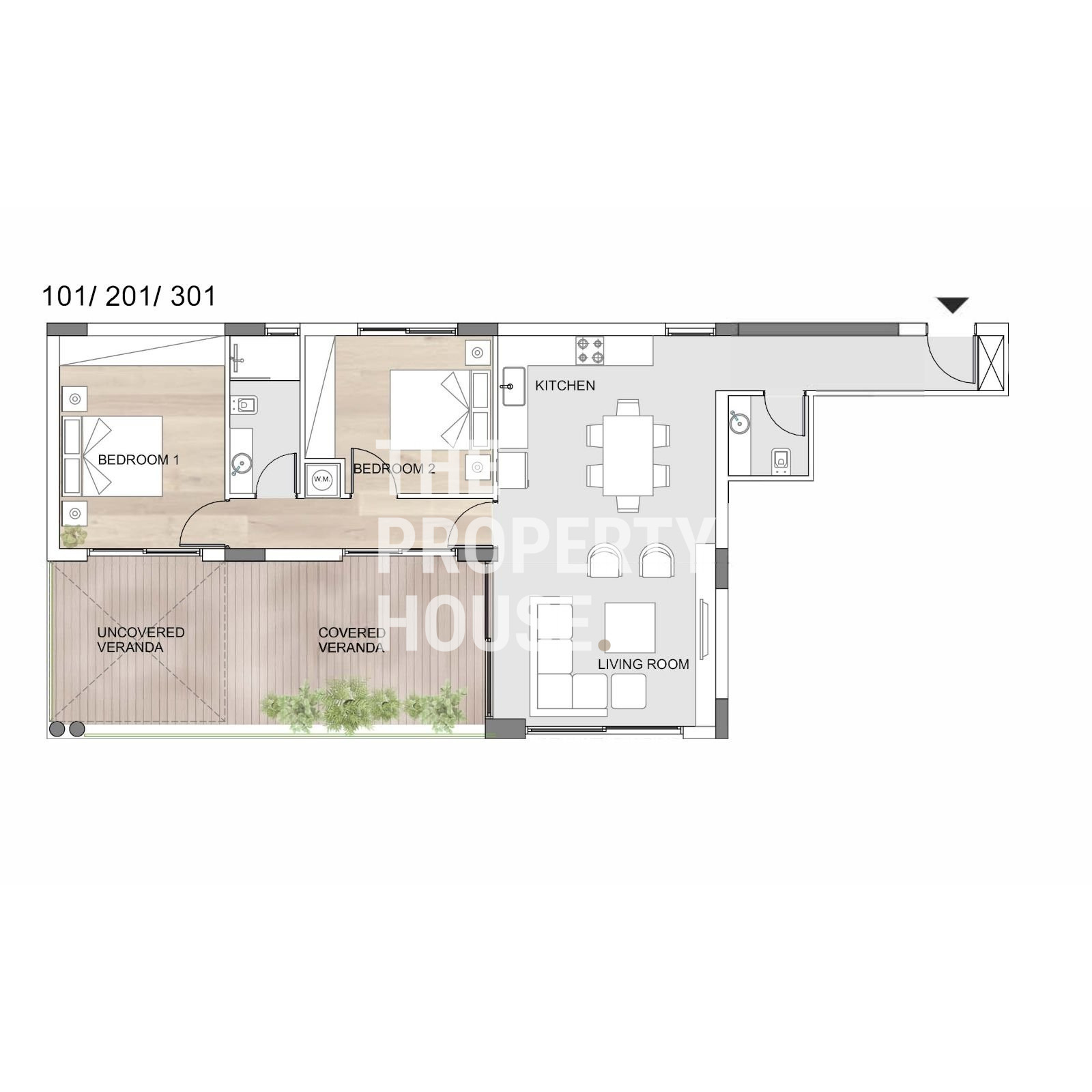 This cozy home features an open plan living and dining area, connected to a spacious covered balcony. A separate hallway leads to the two bedrooms and a family bathroom. The master bedroom has it's own ensuite bathroom. On the ground floor, there is a covered parking space and a storage room.