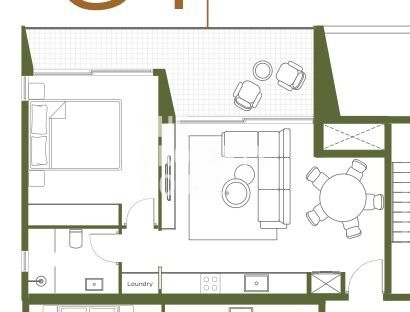 Living room with open plan kitchen, bedroom with bathroom, veranda and garden, storage room and one parking spot in the underground parking.