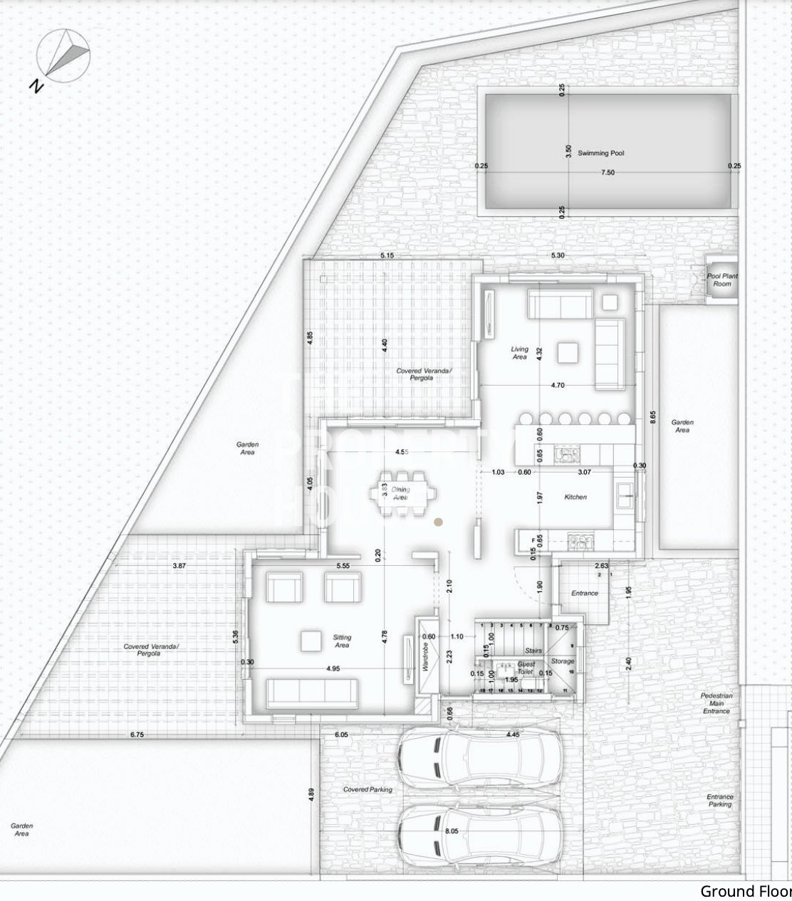 This 3-bedroom house consists of 216m2 internal area in addition to a 58m2 covered veranda. The ground floor consists of a separate living area, a separate dining area, a separate kitchen and a guest toilet. There is amply garden space and a 8mx4m swimming pool on the 467m2 plot.