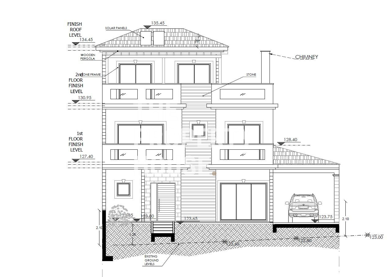 • The house, itself, contains 3 floors and a roof garden. On the ground floor, there is the dining room combined with the kitchen, a guest toilet and an uncovered veranda with a private garage - covered parking.