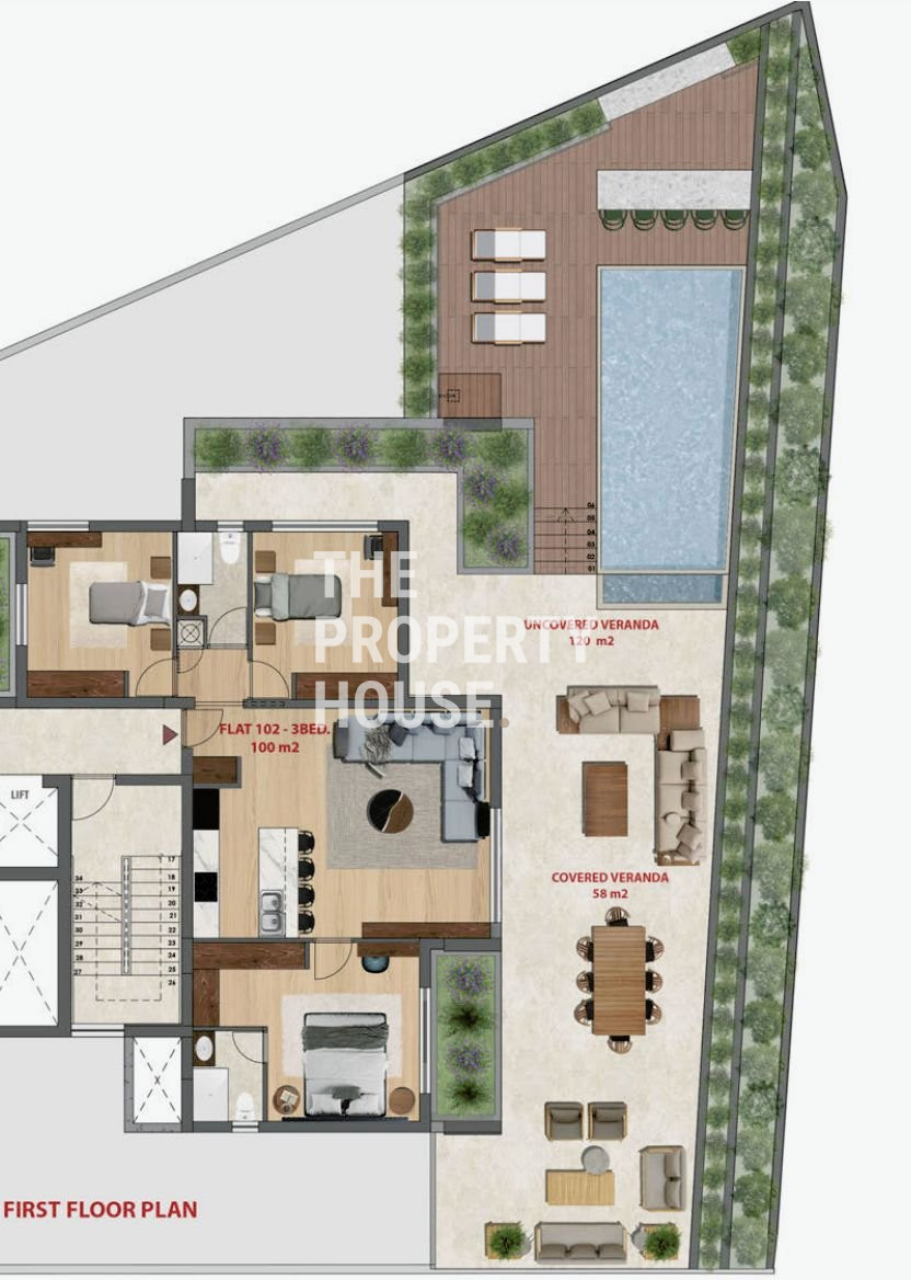 The spacious apartment is located on the first floor and comes with its own private over-flow swimming pool and exceptionally large verandas, making it a very unique proposition for its residents.