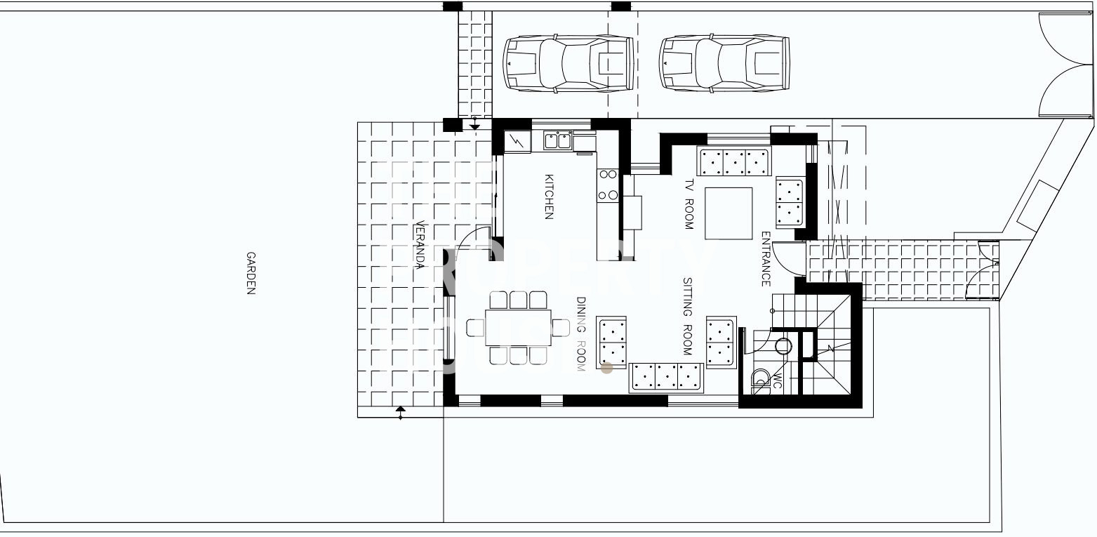 The house Each boasts a spacious kitchen and dining area, a sitting lounge and a TV room. Upstairs we find three bedrooms and two bathrooms, the master being ensuite.