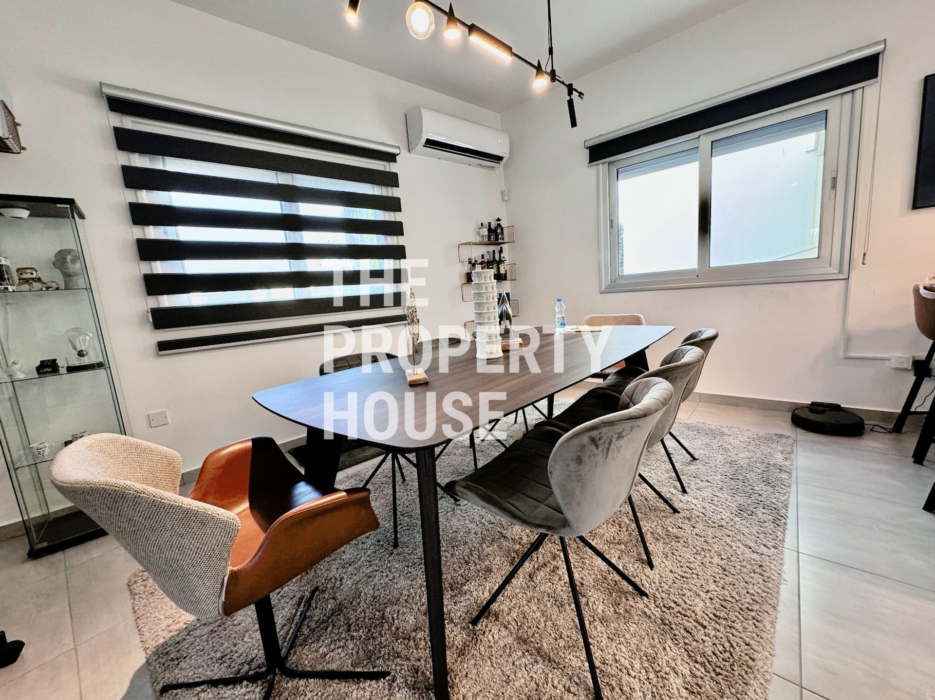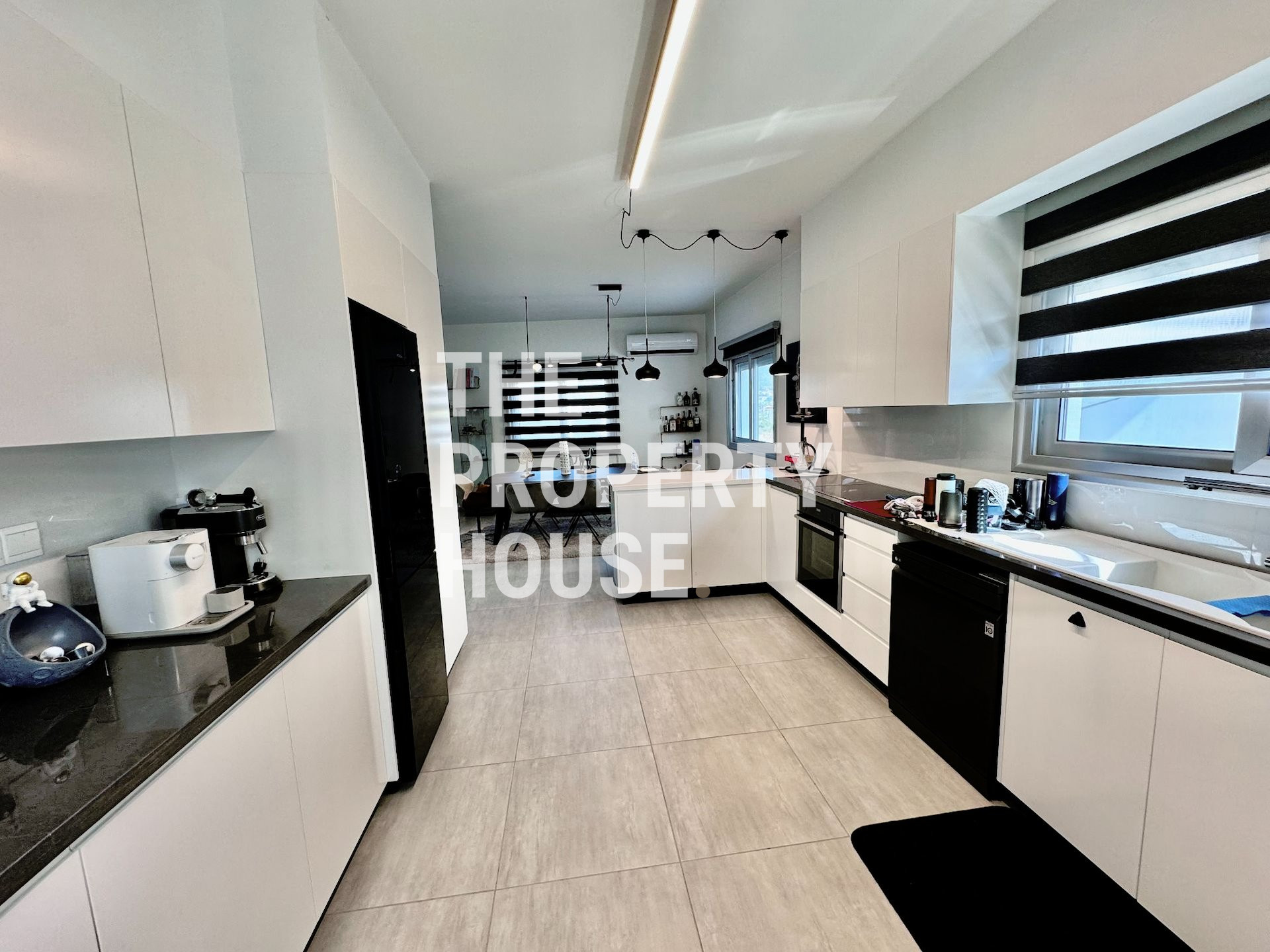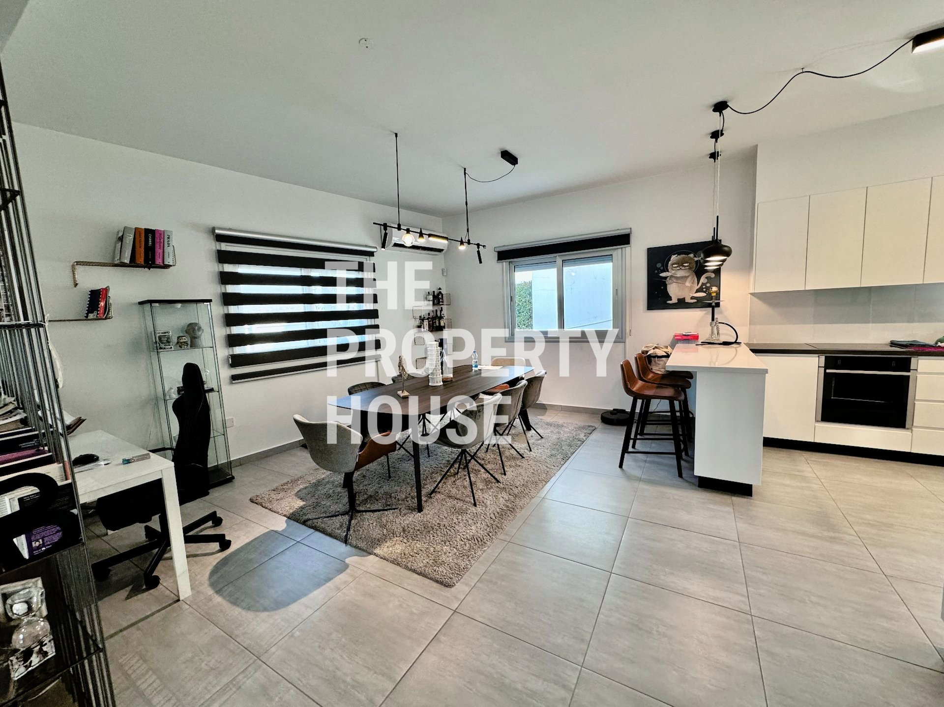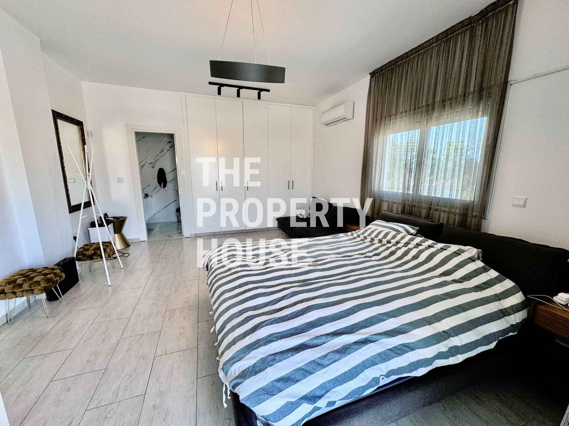 The kitchen is a culinary enthusiast's dream, fully equipped with modern appliances and an island bar, perfect for everything from casual meals to gourmet cooking. Climate control is made easy with individual air conditioning units in every room, ensuring your comfort throughout the year.