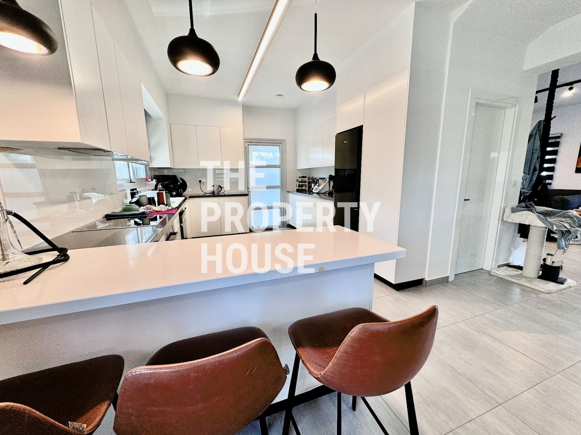 Inside, you'll find three spacious bedrooms, each equipped with motorized blackout blinds to ensure a restful night's sleep. The home also features two full bathrooms with high-end fixtures, plus an additional two toilets for added convenience and privacy. The living areas are meticulously furnished, providing a stylish and comfortable environment for relaxation and entertaining.