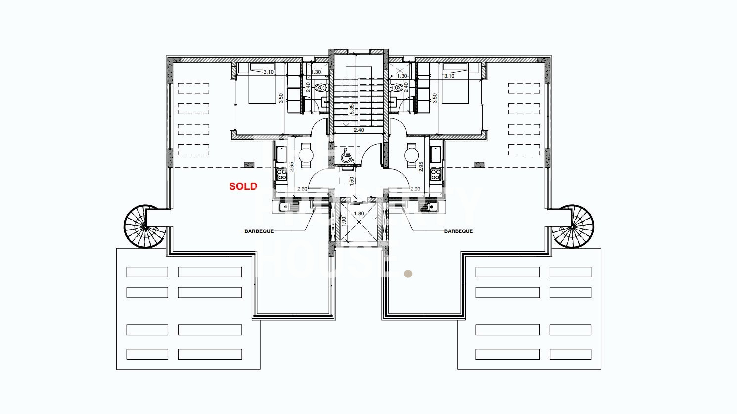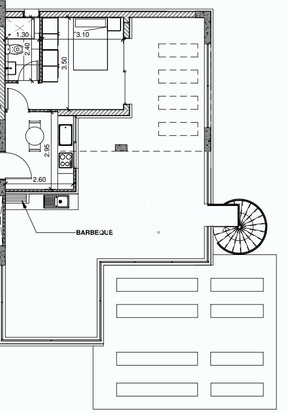 A spiral staircase ascends to the crown jewel of the penthouse: a magnificent roof garden of 62m2, designed as a self-contained apartment of 34m2 complete with its own kitchen/Living room, bedroom and bathroom. The rooftop garden offers a spacious living area and a dedicated barbecue spot, where you can entertain guests while enjoying unobstructed sea and country views.