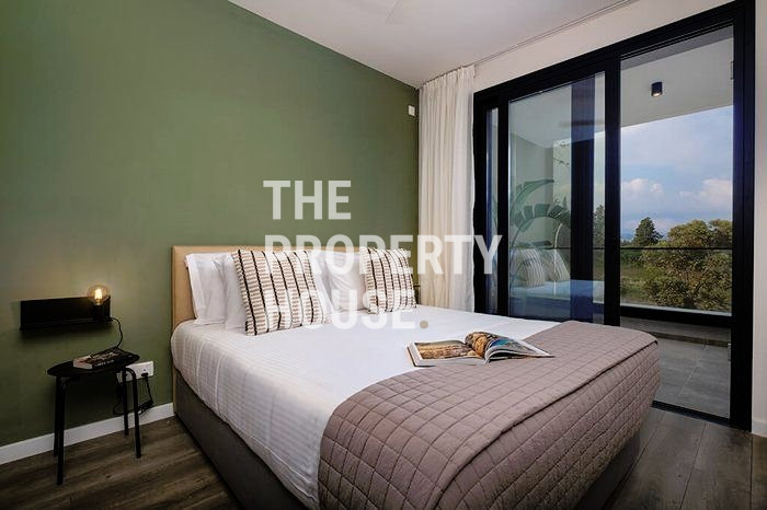 The 1st floor apartment features an open-plan living area that connects to a spacious veranda, with amazing views of the beautiful complex. A doorway leads to the sleeping quarters, comprising two bedrooms, a bathroom, a guest toilet and a laundry cupboard.