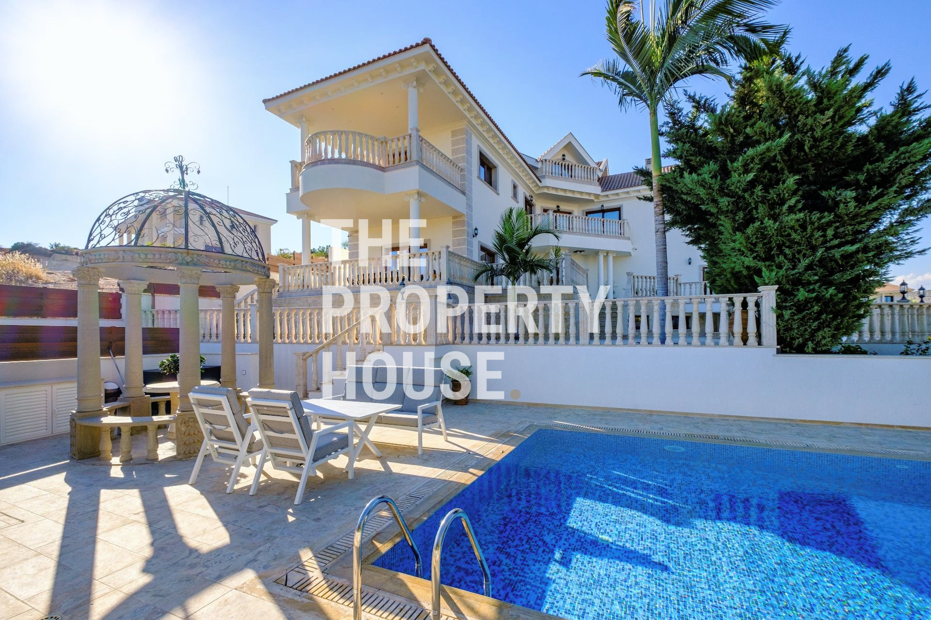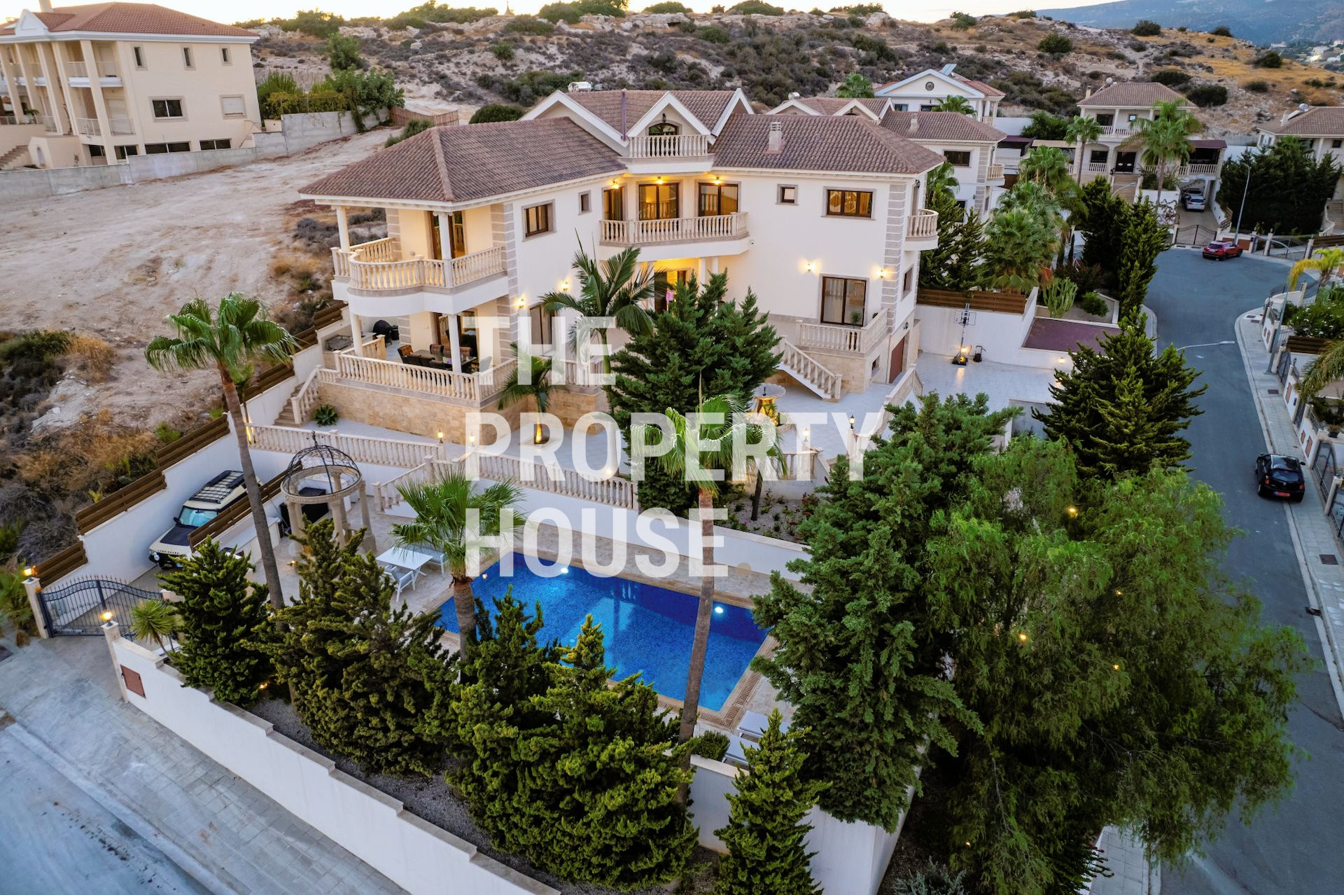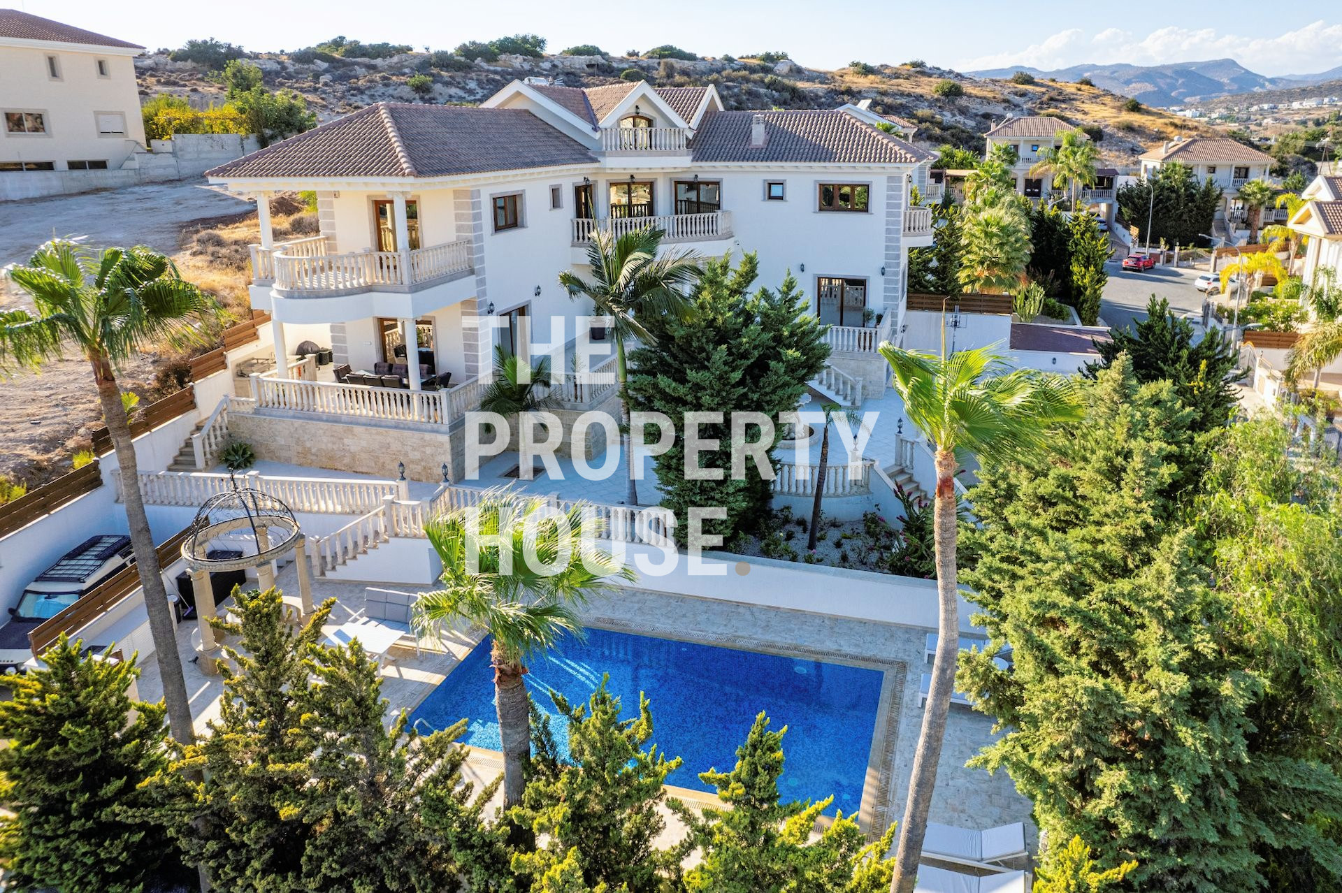 The Property House presents this exquisite six-bedroom villa located in Mouttagiaka, Limassol. The villa boasts elegant finishes with marble, mosaic, and granite throughout, complemented by marble and real stone facades. Each of the six spacious bedrooms offers comfort and style, with the master suite featuring a walk-in wardrobe.