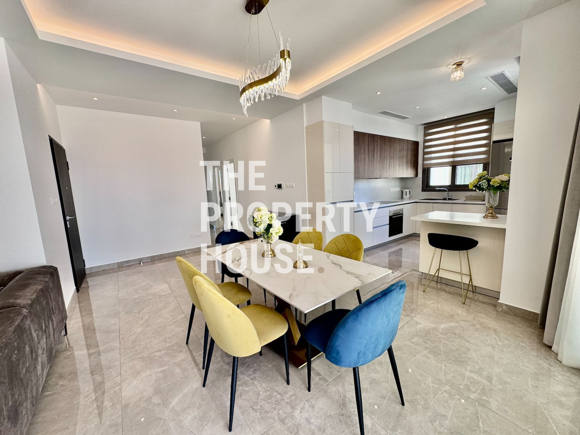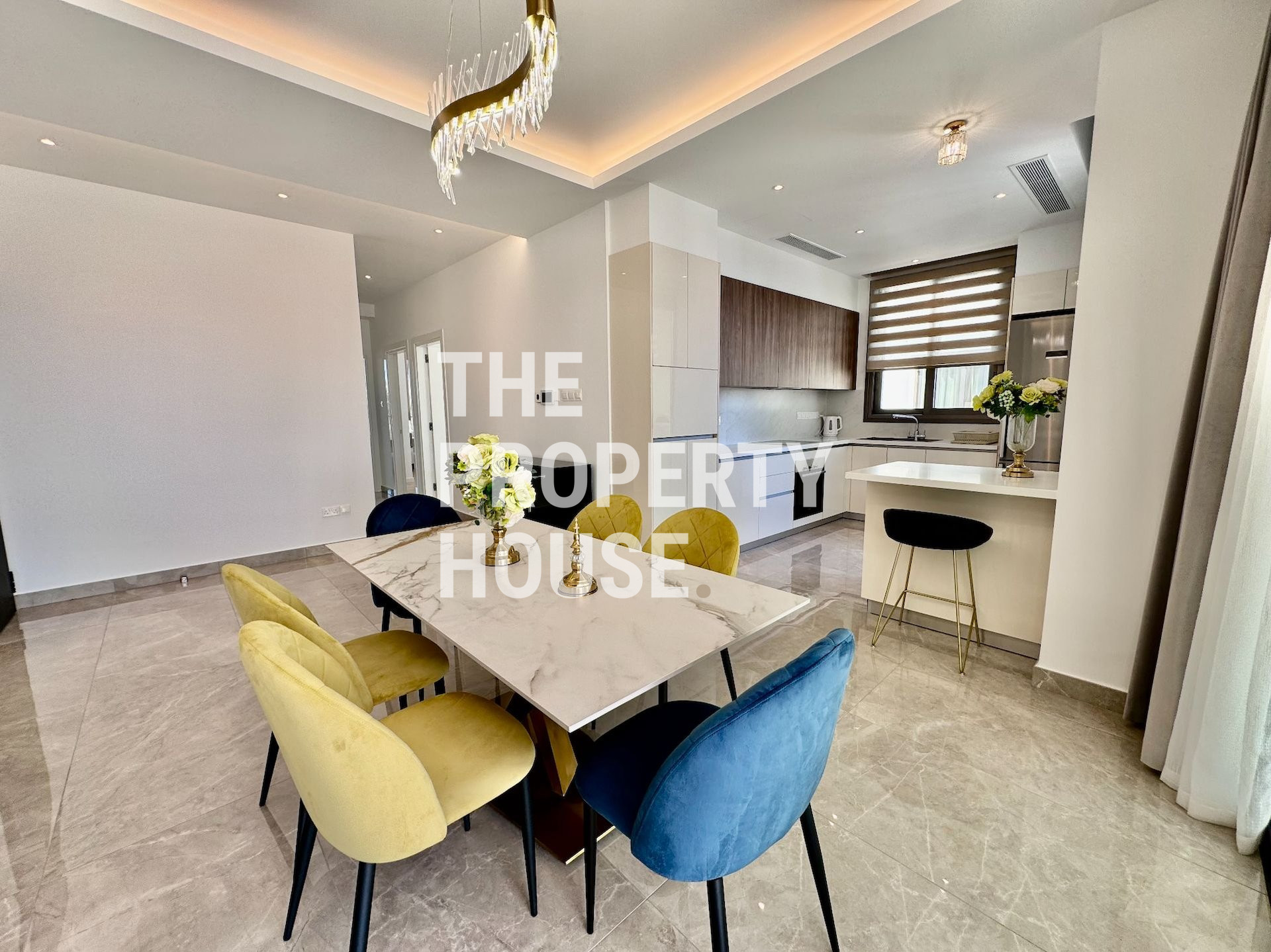 The apartment, built in 2021, features stylish furnishings and a central AC system, ensuring comfort year-round. Conveniently located in a gated complex, residents can enjoy the luxury of a private swimming pool, a well-equipped gym and children day care area. The apartment is south-facing, providing breathtaking views of the city, countryside, and the sea. The roof top providing a private swimming pool, and the additional bedroom.
