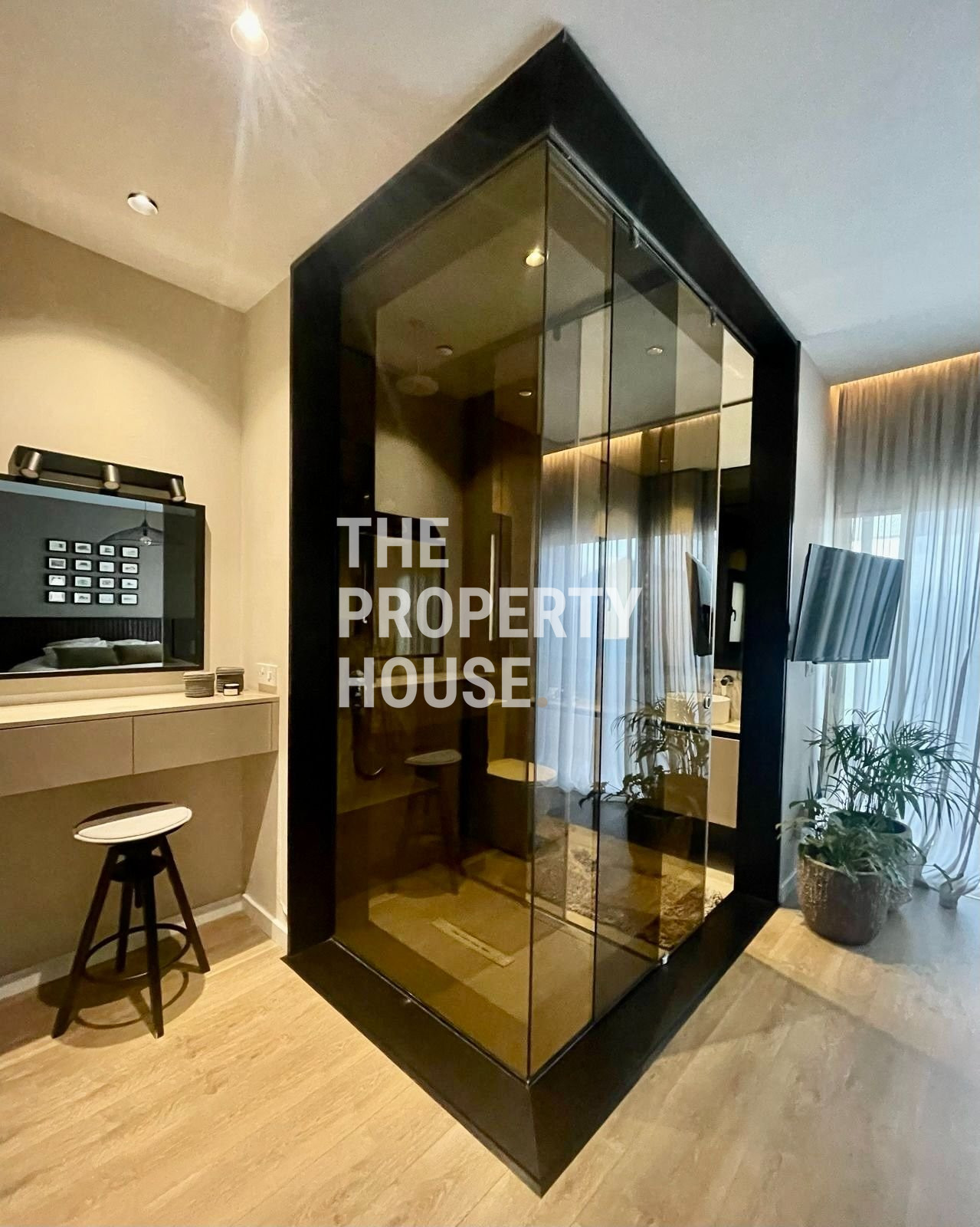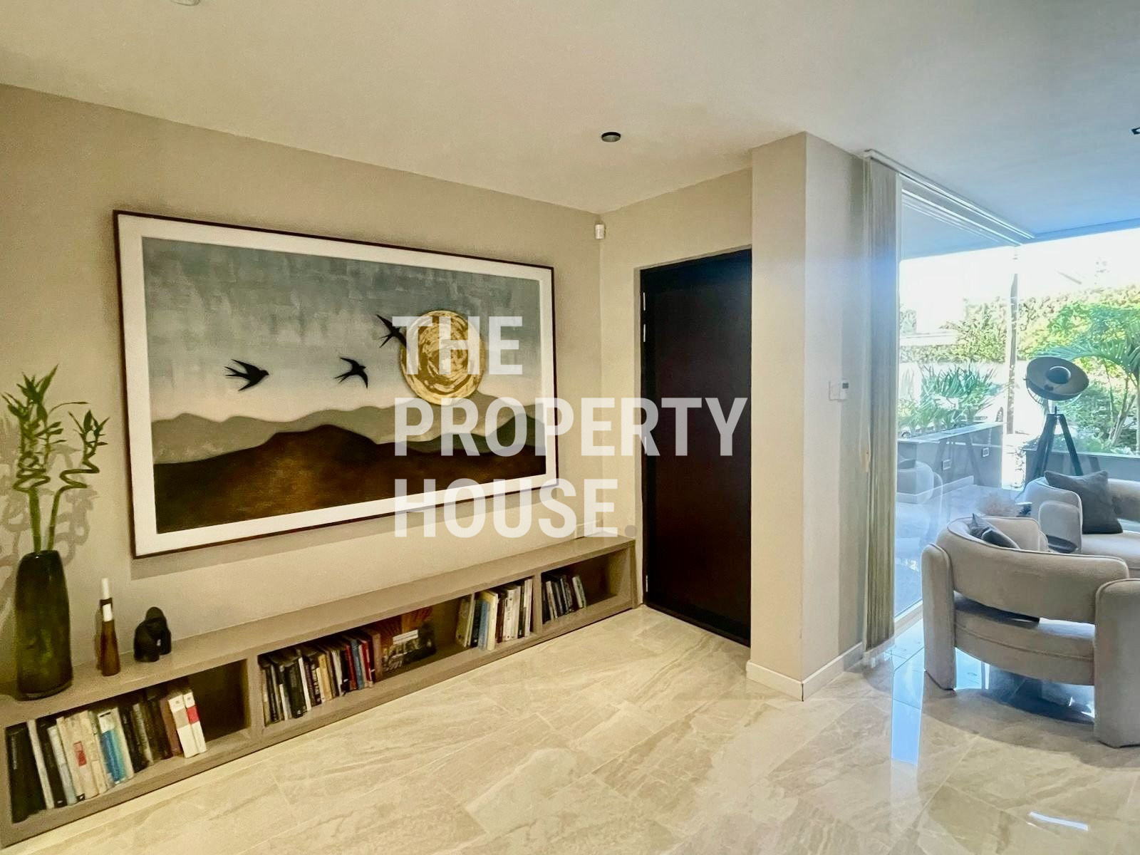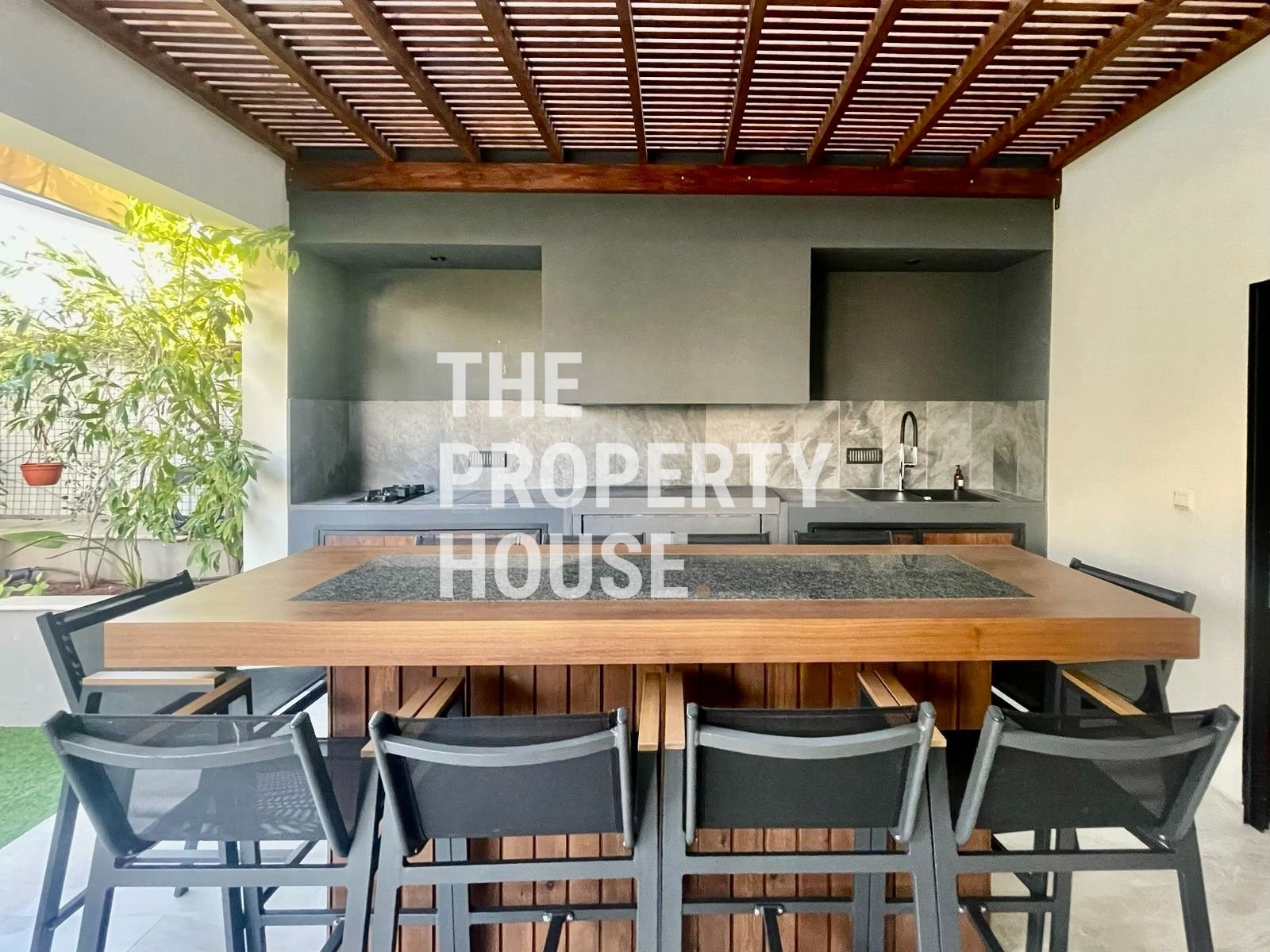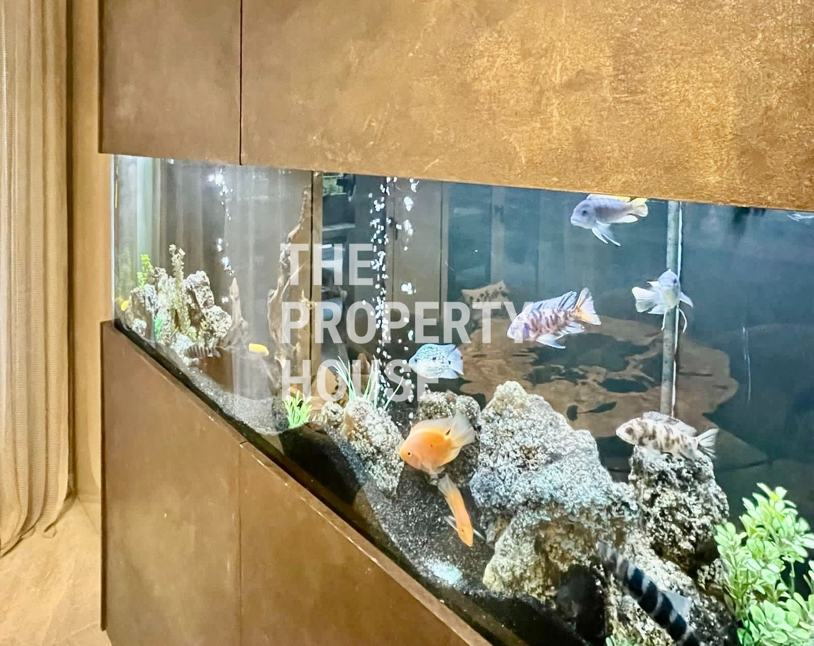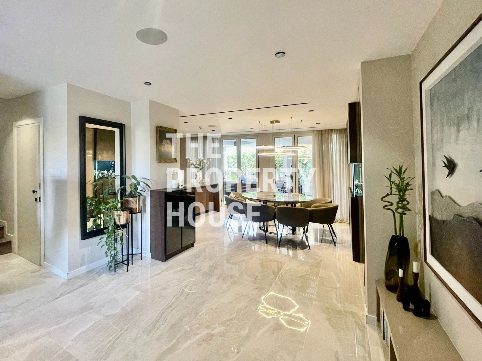 Thoughtfully designed with both style and comfort in mind, the home welcomes you with a warm, inviting atmosphere the moment you walk in. The ground floor features a spacious open-plan layout, with a cozy living area complete with a fireplace, a sleek kitchen with a central island, and a dining area enhanced by a unique built-in tropical fish tank. Integrated sound systems and large sliding doors open up to the lush private garden, where you’ll find a second living area, outdoor TV lounge, a full outdoor kitchen, and a bar—perfect for entertaining guests.