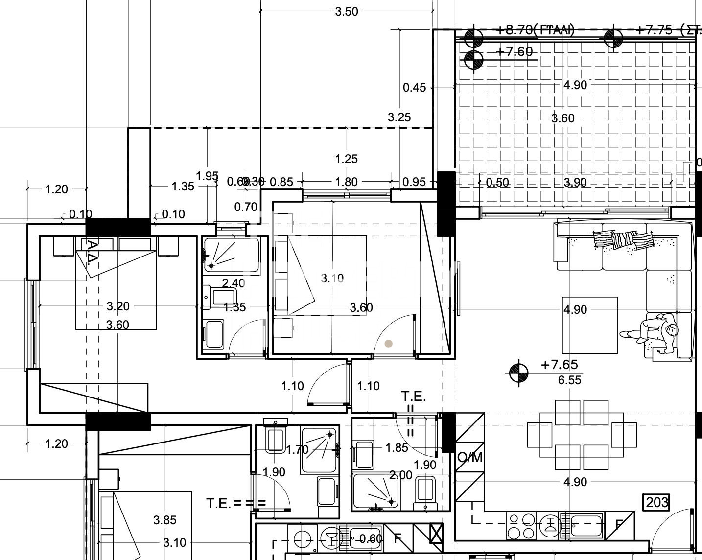 The apartment features two well-proportioned bedrooms and two stylish bathrooms. The master bedroom includes an en-suite bathroom and direct access to the veranda, creating a comfortable and private retreat. Premium finishes include VRV air-conditioning, a suspended ceiling with integrated spotlights, and an individual photovoltaic system to significantly reduce energy consumption and costs.