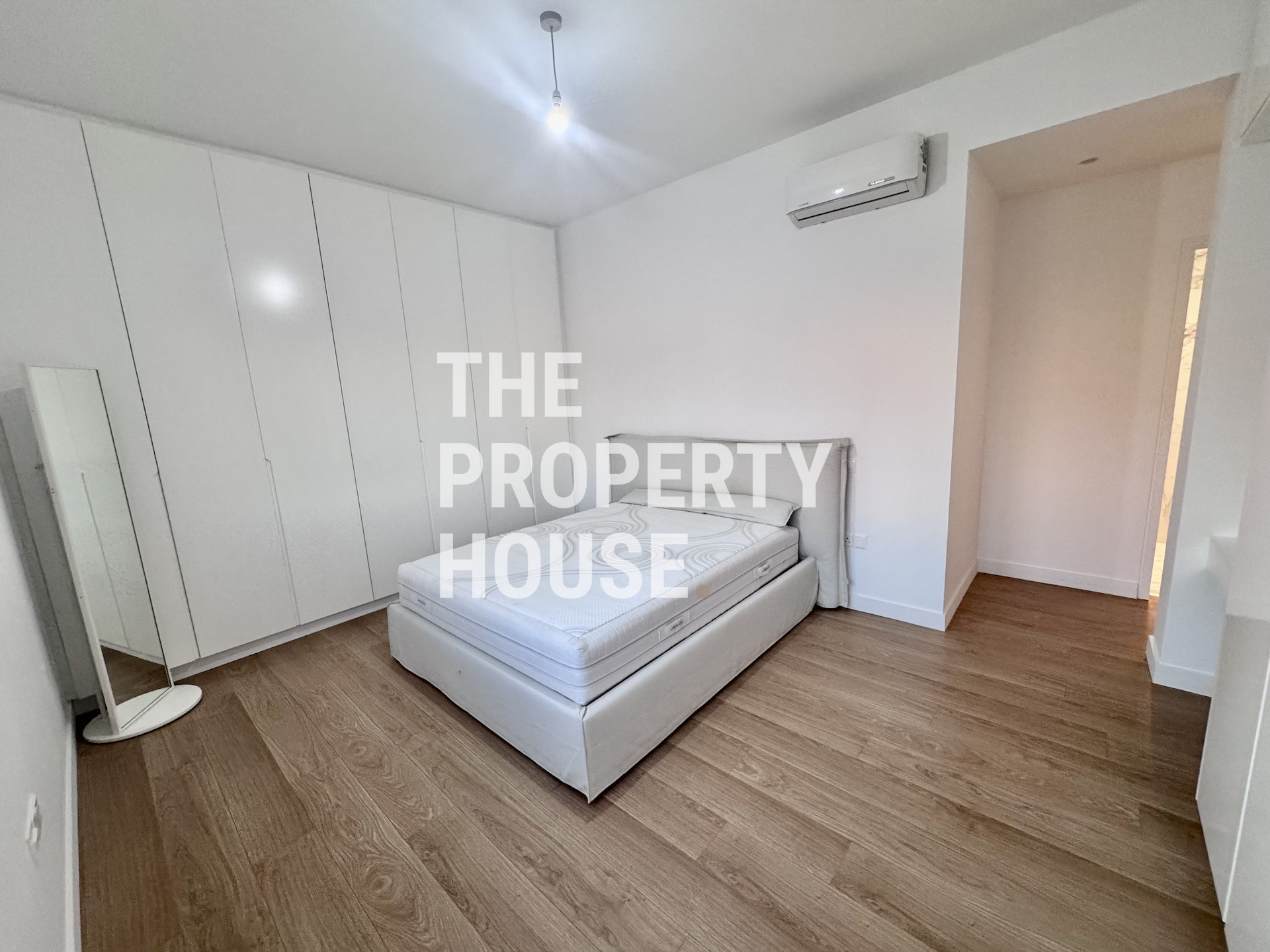 The thoughtfully designed layout includes a guest toilet, two bedrooms with electric shutters that share a main bathroom, and a spacious master bedroom featuring wardrobes on both sides and a private en-suite bathroom. Every detail has been carefully considered to combine comfort, style, and practicality.