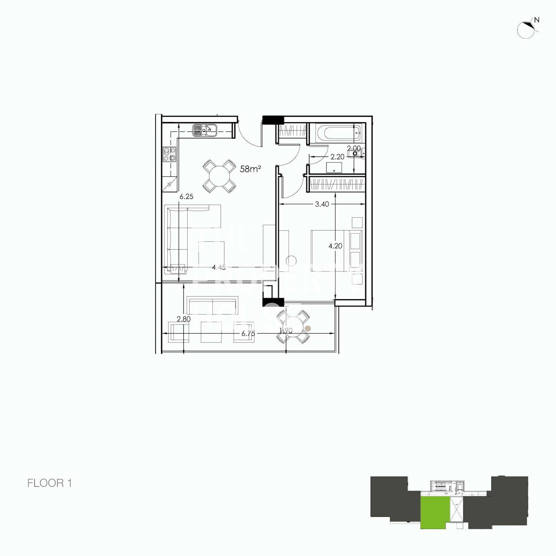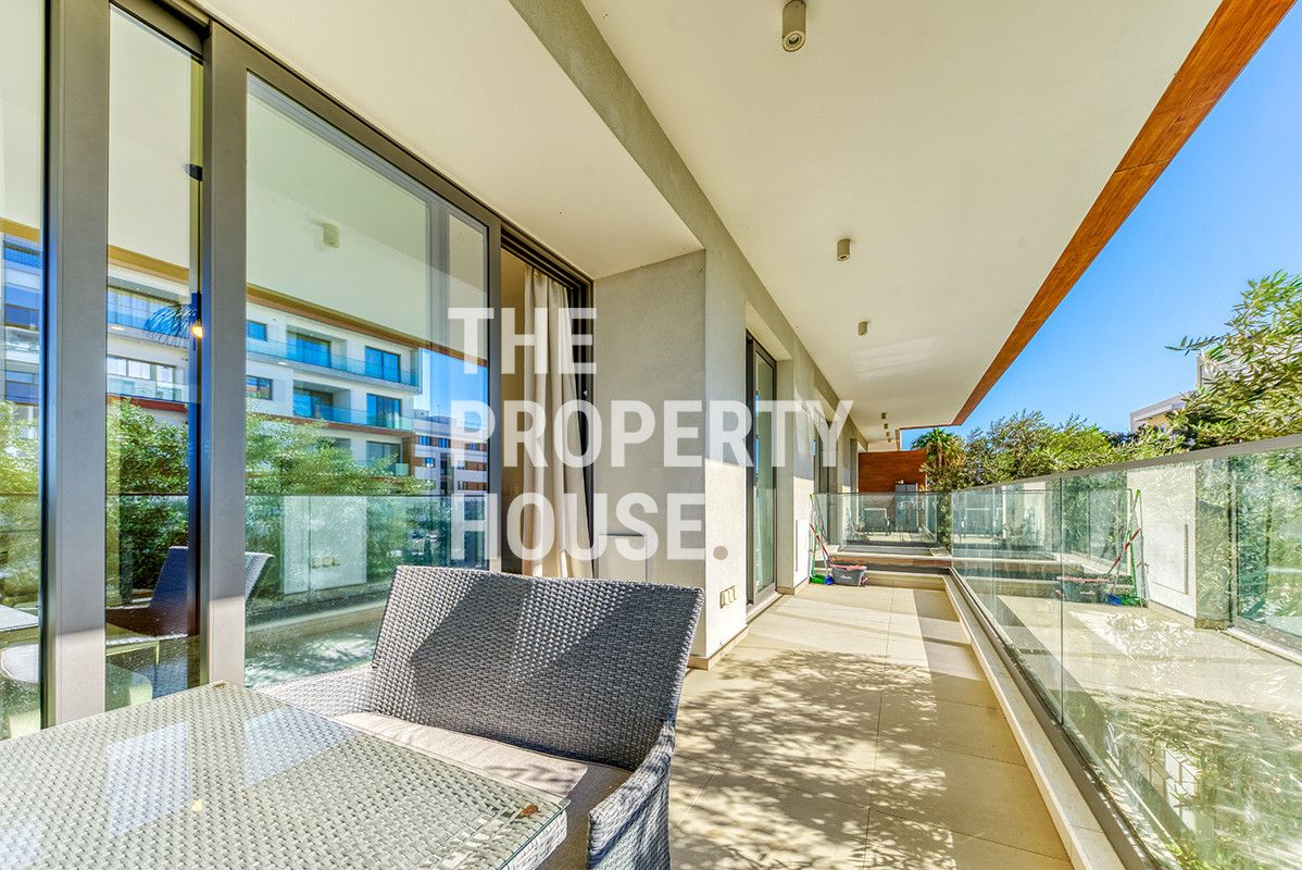 The apartment is tastefully furnished and designed for comfortable long-term living. It features a spacious bedroom, a bright open-plan kitchen, and combined living and dining areas that create a welcoming and functional space. A modern family bathroom, a generous covered veranda ideal for relaxation, and a private storage room complete the interior layout.