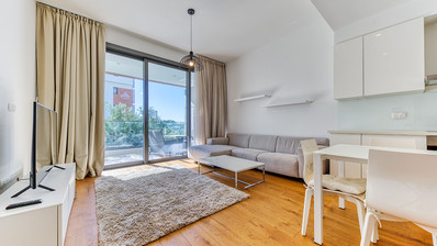 The residential complex offers a range of facilities for residents, including a communal swimming pool, gym, sauna, covered parking, and a secure controlled entrance, ensuring comfort, privacy, and peace of mind. Despite its central location, the area remains quiet and residential, making it ideal for professionals or couples.