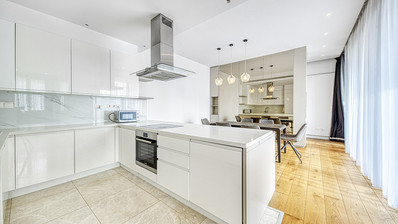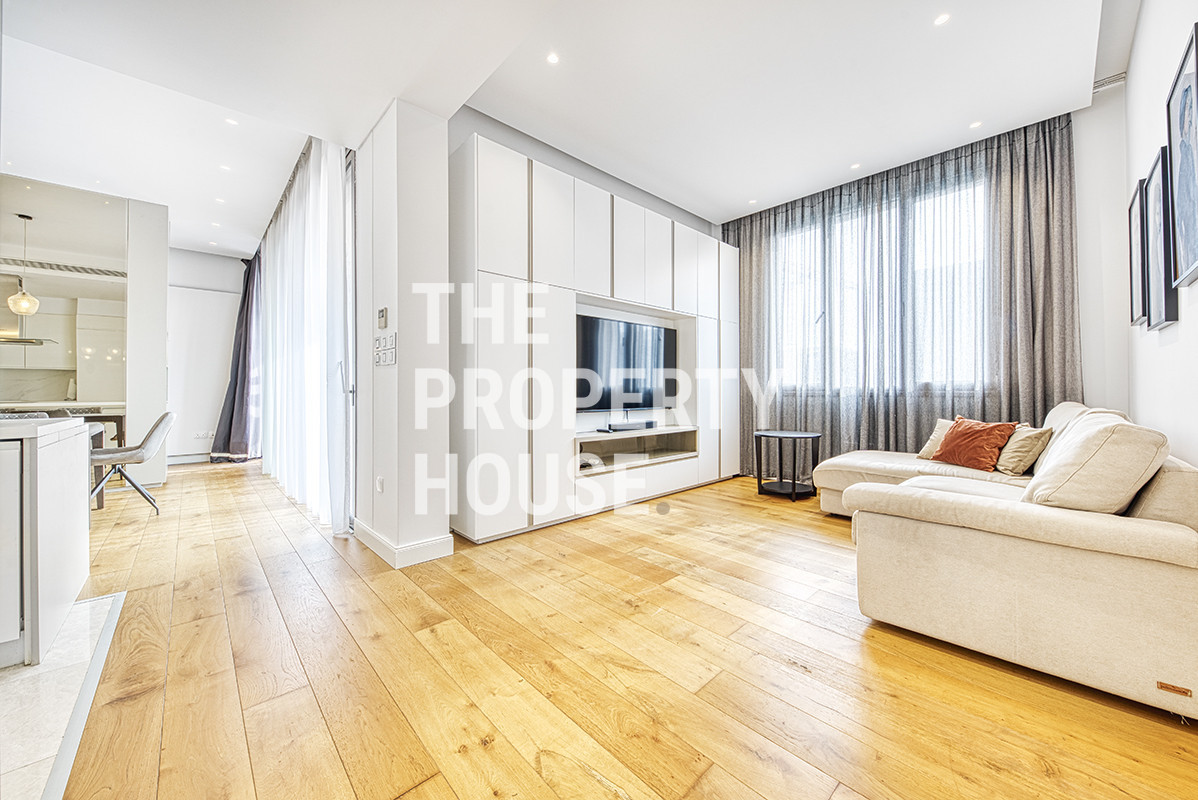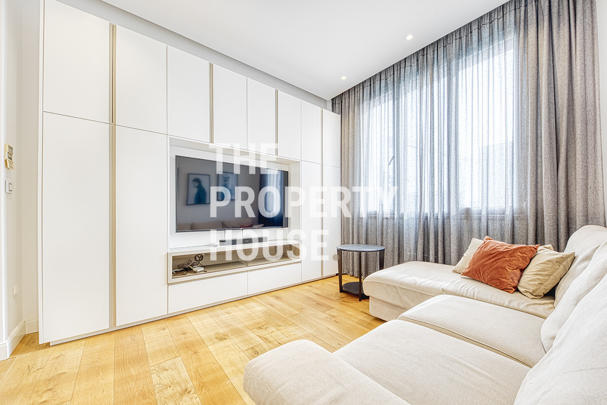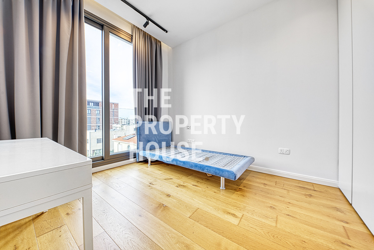 The interior is designed with a strong focus on quality and modern aesthetics. Only premium materials have been used throughout, including double-glazed windows, VRV air-conditioning, luxury flooring, a branded kitchen, high-quality doors and wardrobes, and top-standard sanitary fittings. The bright living room features an open-plan kitchen, creating a spacious and inviting atmosphere filled with natural light. The penthouse comprises three bedrooms and two bathrooms, offering comfortable accommodation for families or professionals.