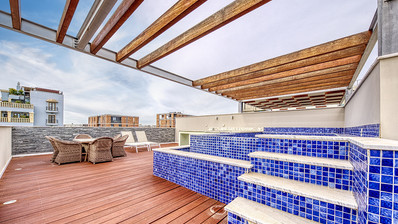 Situated within a high-quality residential complex, the penthouse enjoys a spacious private terrace with its own swimming pool, ideal for outdoor living, relaxation, and entertaining. Residents also benefit from access to a communal swimming pool, beautifully landscaped gardens, and covered parking, creating a secure and well-maintained living environment.