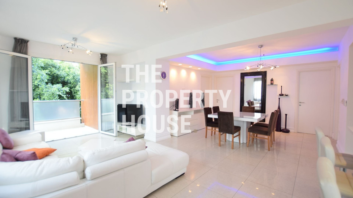 The apartment enjoys garden views and is furnished with new, stylish Italian furniture, creating an elegant and welcoming living environment. It comprises three bedrooms and two bathrooms, a fully equipped modern kitchen with high-quality German appliances, and contemporary finishes throughout. Triple-glazed windows, VRV air-conditioning in all bedrooms and the living room, and underfloor heating ensure year-round comfort. Bed linen and towels are also provided, making the apartment ideal for immediate move-in.