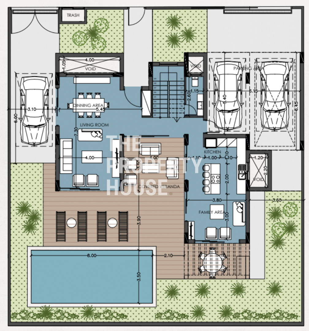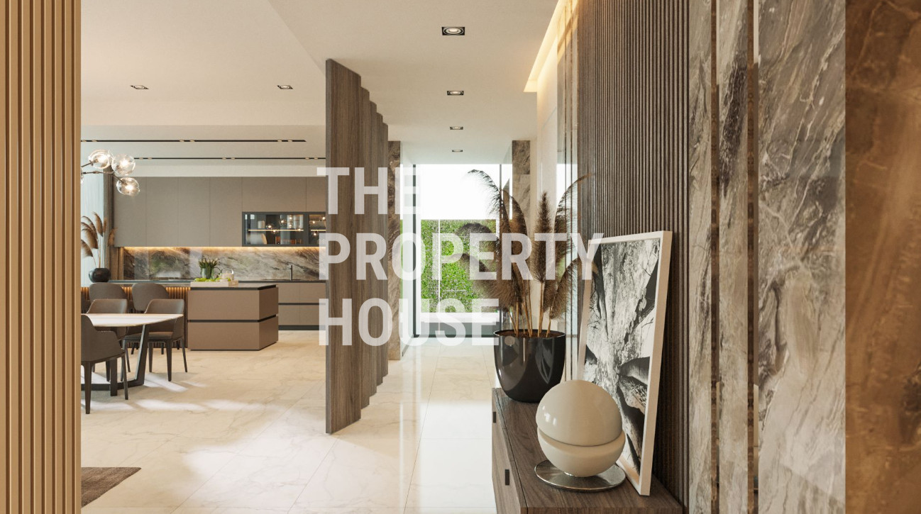 Upon entering the villa, you are welcomed into a bright and spacious open-plan living and dining area, enhanced by large floor-to-ceiling windows that flood the space with natural light and create a seamless indoor-outdoor living experience. The modern kitchen is thoughtfully designed with high-quality finishes, ample storage, and practical layouts, ideal for both family living and entertaining.