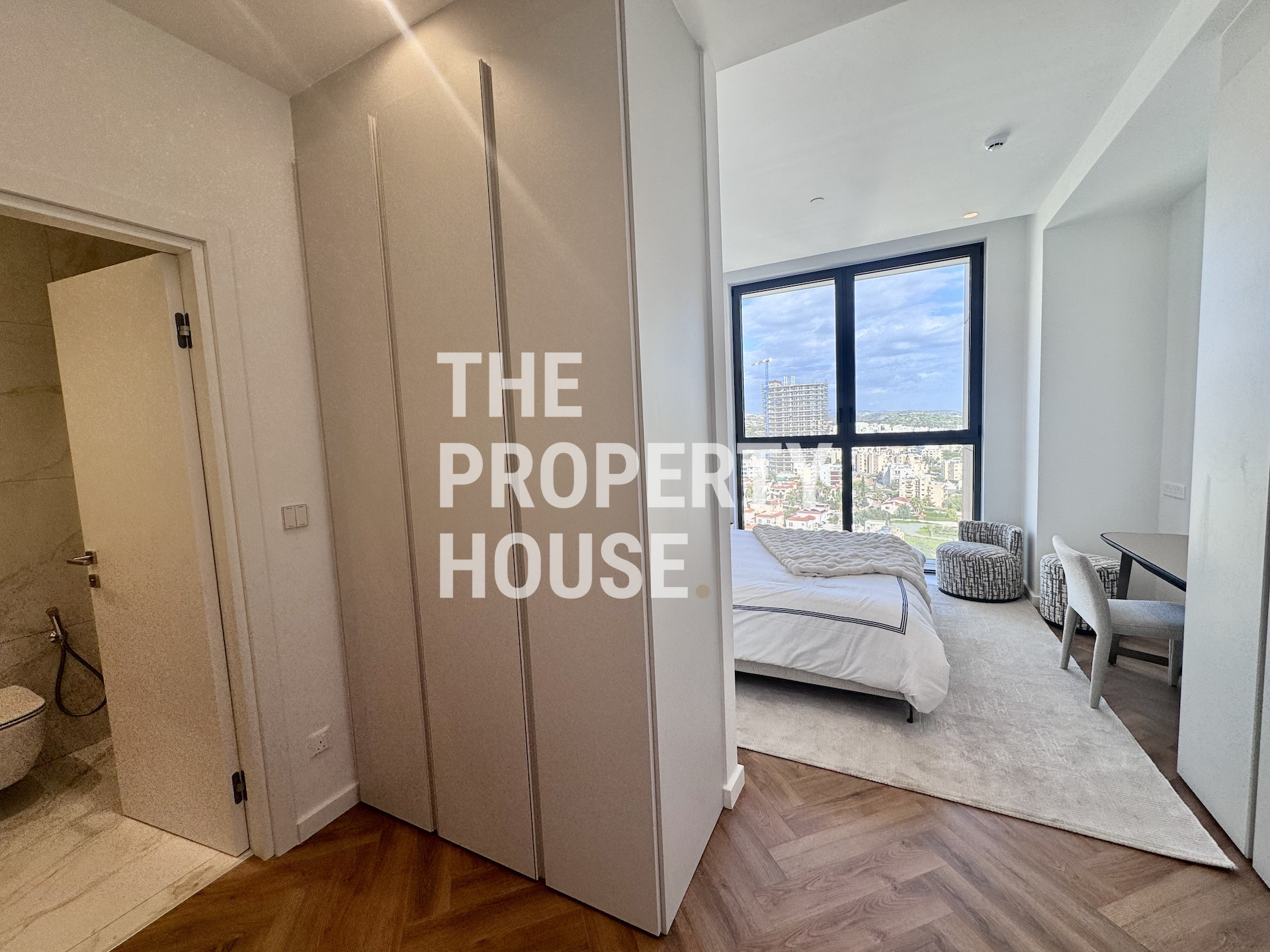Upon entering the apartment, you are greeted by a spacious and light-filled open-plan living and dining area with a contemporary kitchen. Floor-to-ceiling sliding doors open onto a large veranda overlooking the Mediterranean Sea and the Limassol skyline, creating an impressive indoor-outdoor living experience ideal for entertaining or relaxing. The layout is thoughtfully designed for both comfort and privacy, featuring a guest toilet, a master bedroom with walk-in wardrobe and en-suite bathroom, a second bedroom with en-suite shower, and two additional bedrooms sharing a stylish family bathroom.