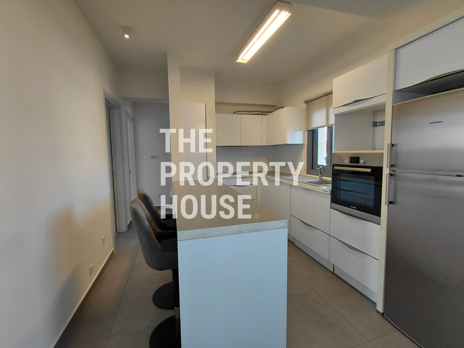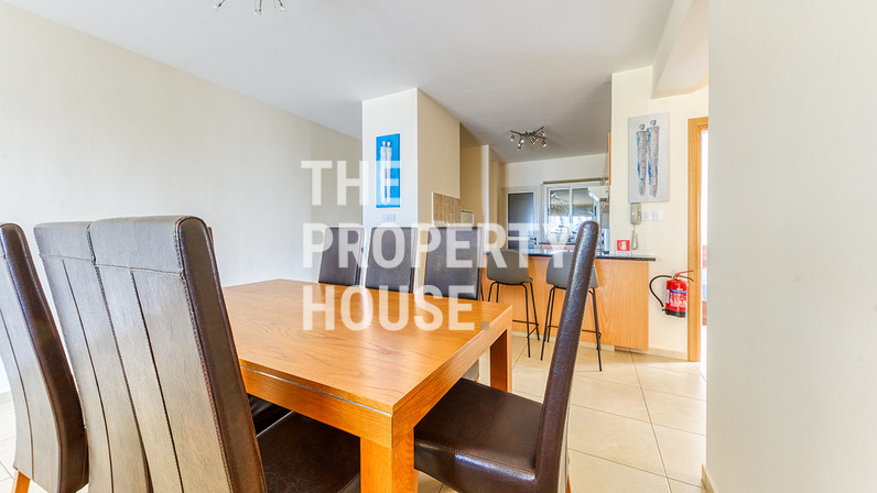 Upon entering the apartment, you are welcomed into a bright open-plan living and dining area designed to provide both relaxation and practicality. Large windows allow abundant natural light to flow throughout the space, enhancing the modern and airy atmosphere. The fully fitted kitchen is thoughtfully designed and ready for immediate use, offering a seamless move-in experience.
