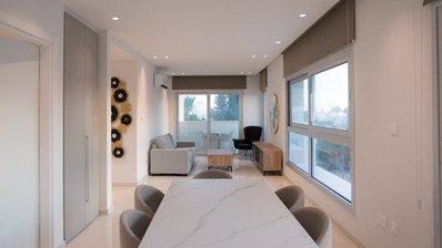 The apartment has been designed with a focus on space, comfort, and functionality. It features a bright open-plan living and dining area that connects seamlessly to a fully fitted and equipped modern kitchen. The layout includes a master bedroom with ensuite shower, a second well-sized bedroom, and a stylish family bathroom, making it ideal for professionals, couples, or small families seeking a quality home in Limassol.