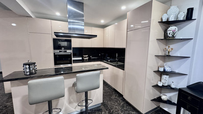 The apartment has been tastefully renovated and offers a spacious open-plan layout combining the living room and modern kitchen, complete with a stylish cooking island that creates an ideal space for entertaining and everyday living. The property features three bedrooms, including a comfortable master bedroom, two additional bedrooms, a main family bathroom, and a practical laundry room for added convenience.
