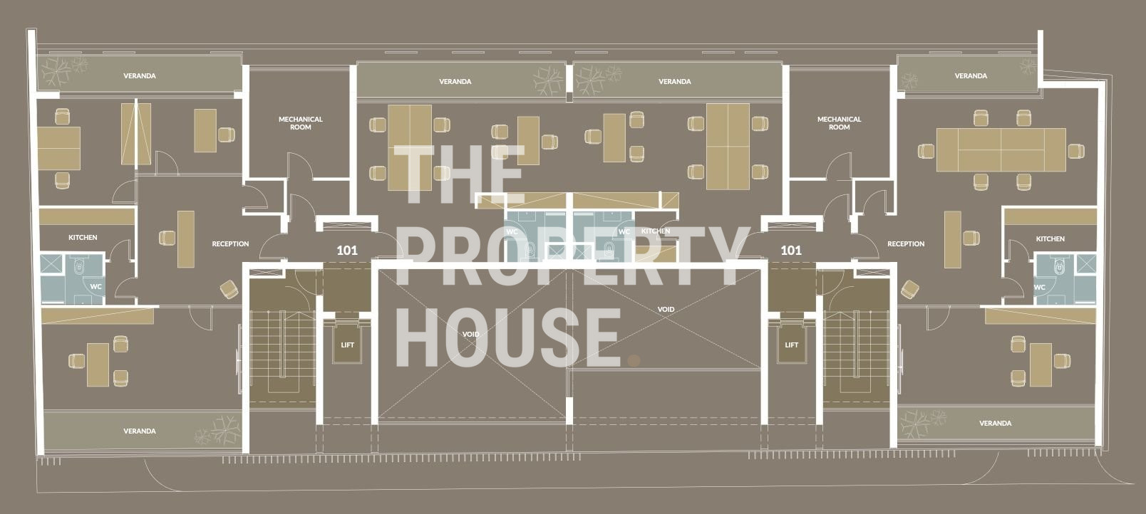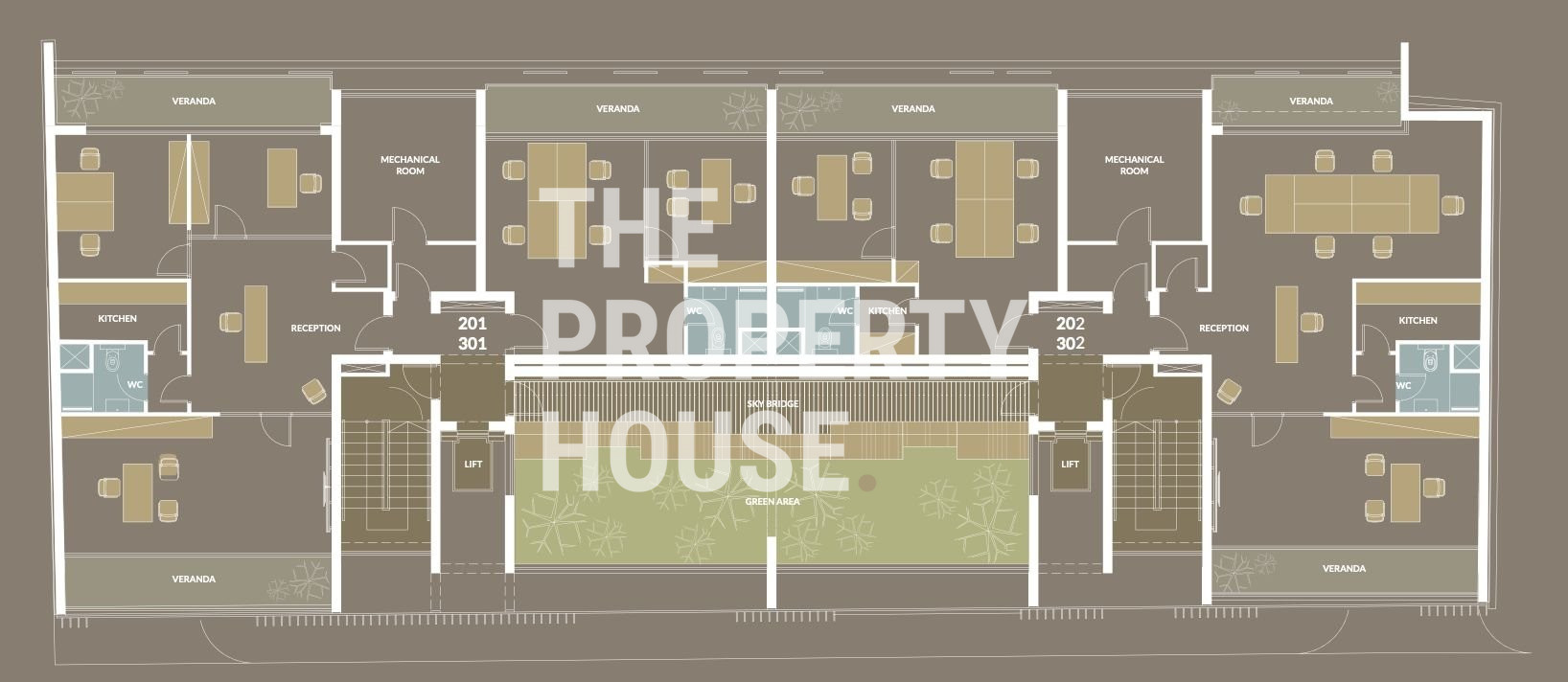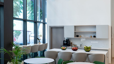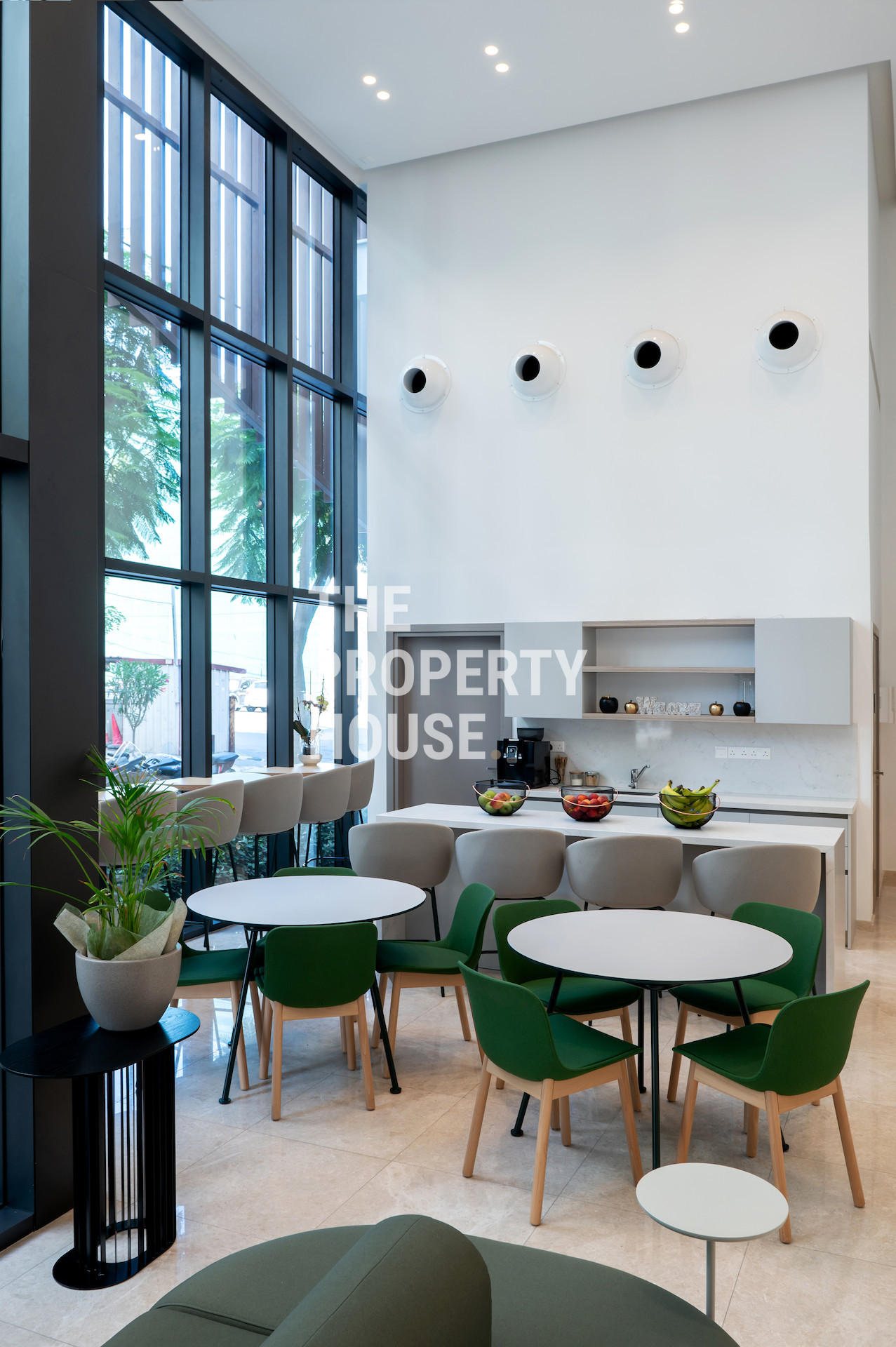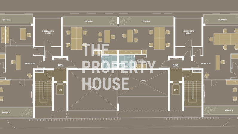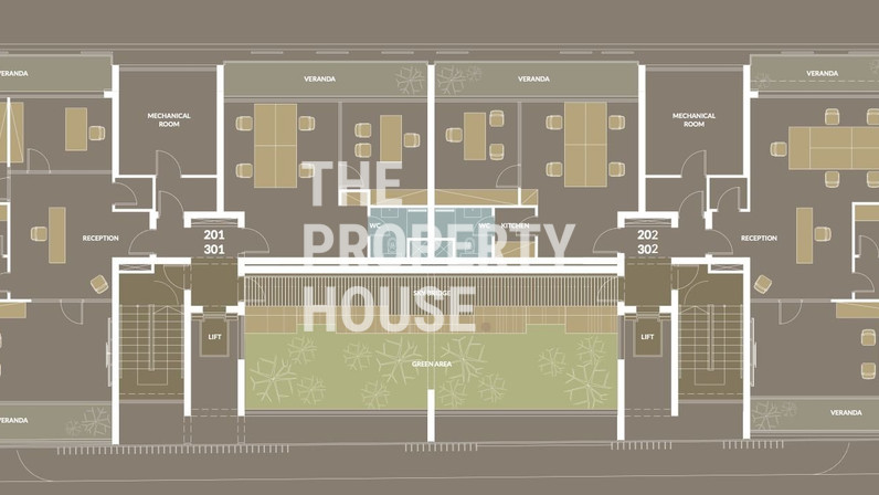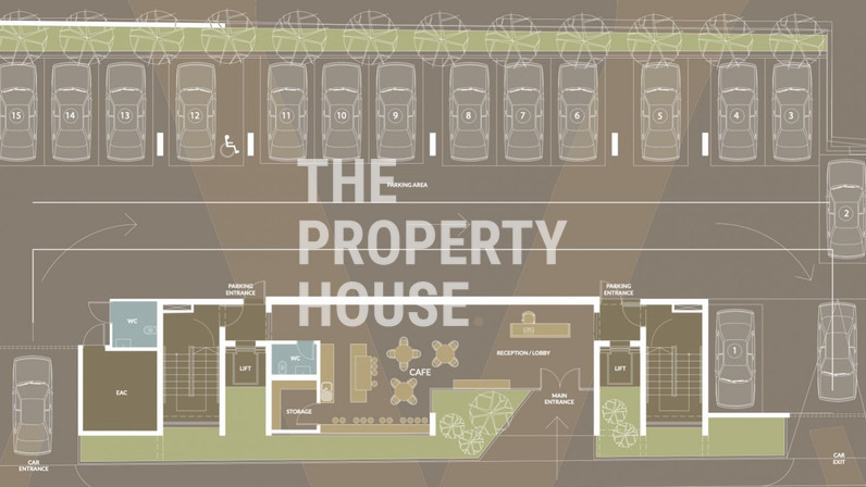 A stylish, contemporary lobby housing two elevators for access to all floors. In the centre of the building is an internal garden with suspended bridge feature, and a communal relaxation lounge ideal for socializing. The entire business centre is secured by remote controlled gates and all the offices have provisions for video entry-phone and alarm systems.