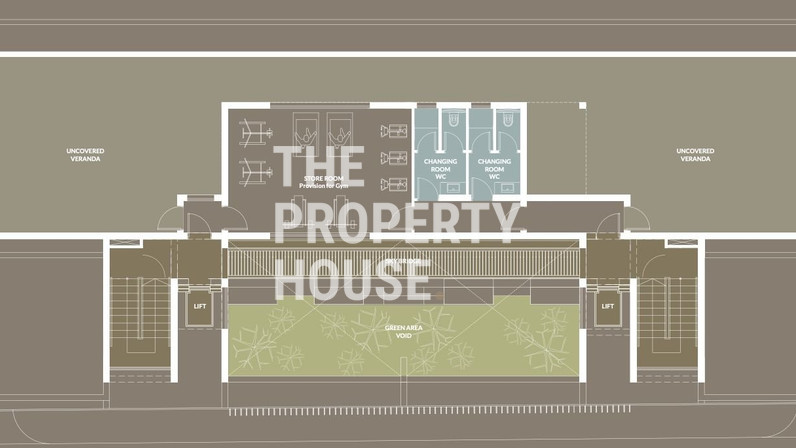 a common cafe-lounge area on the ground floor and a provision for a gym on the 5th floor.