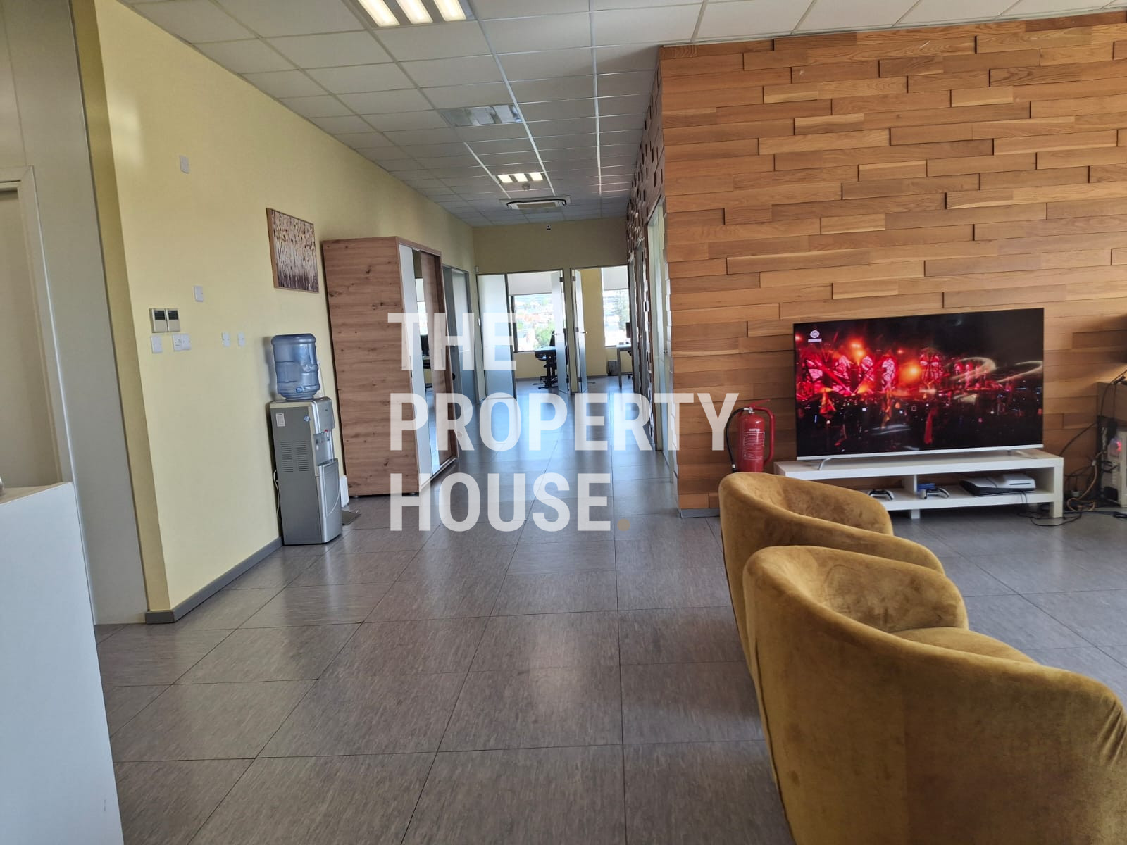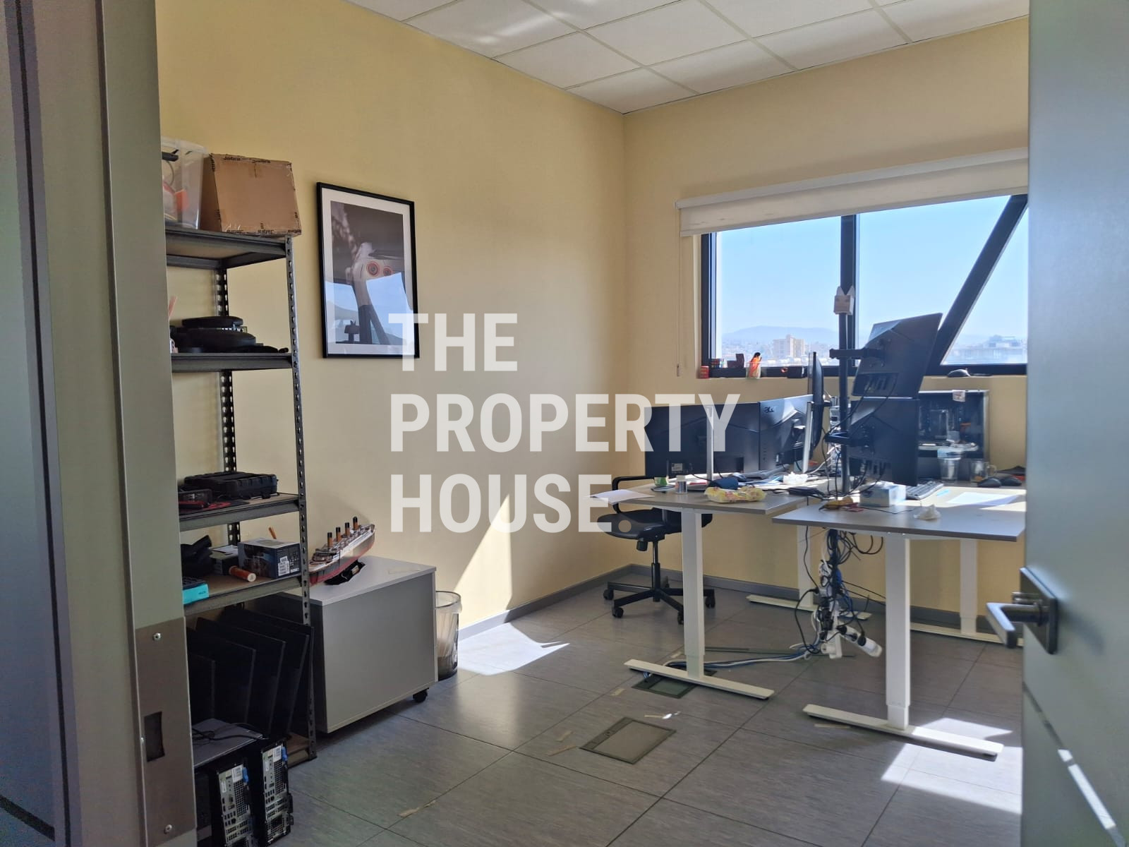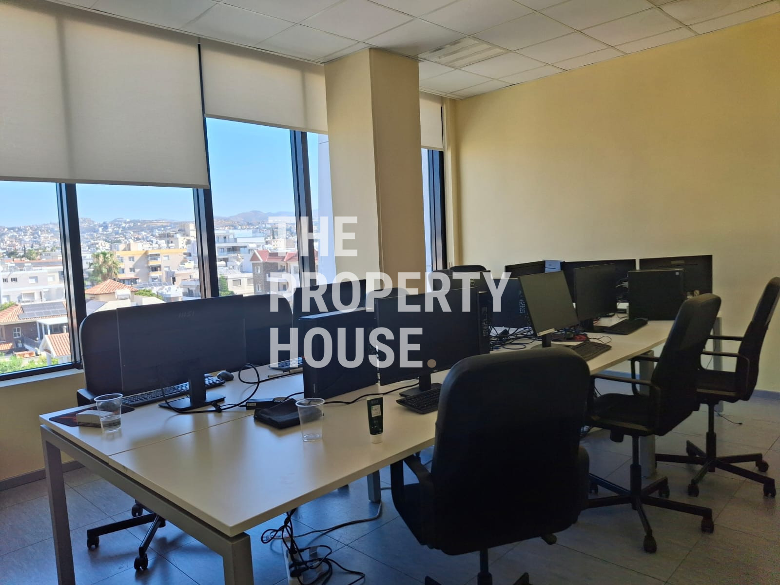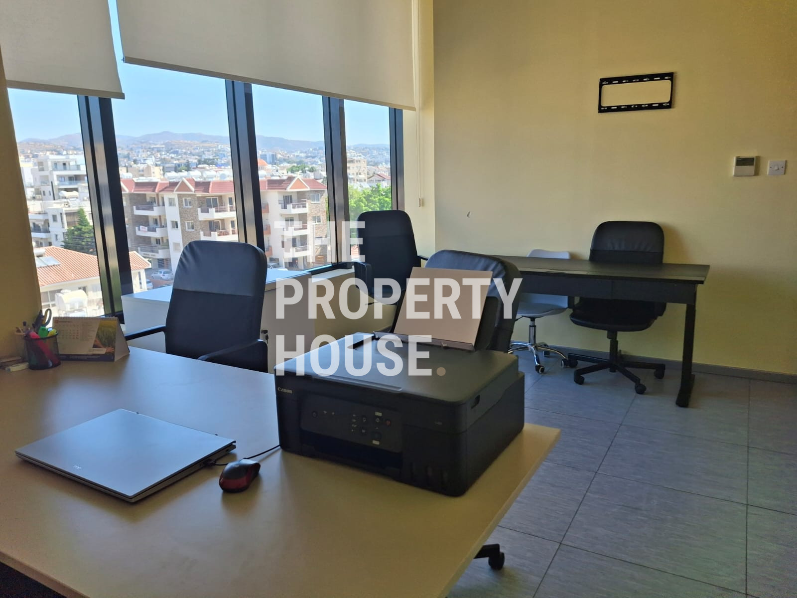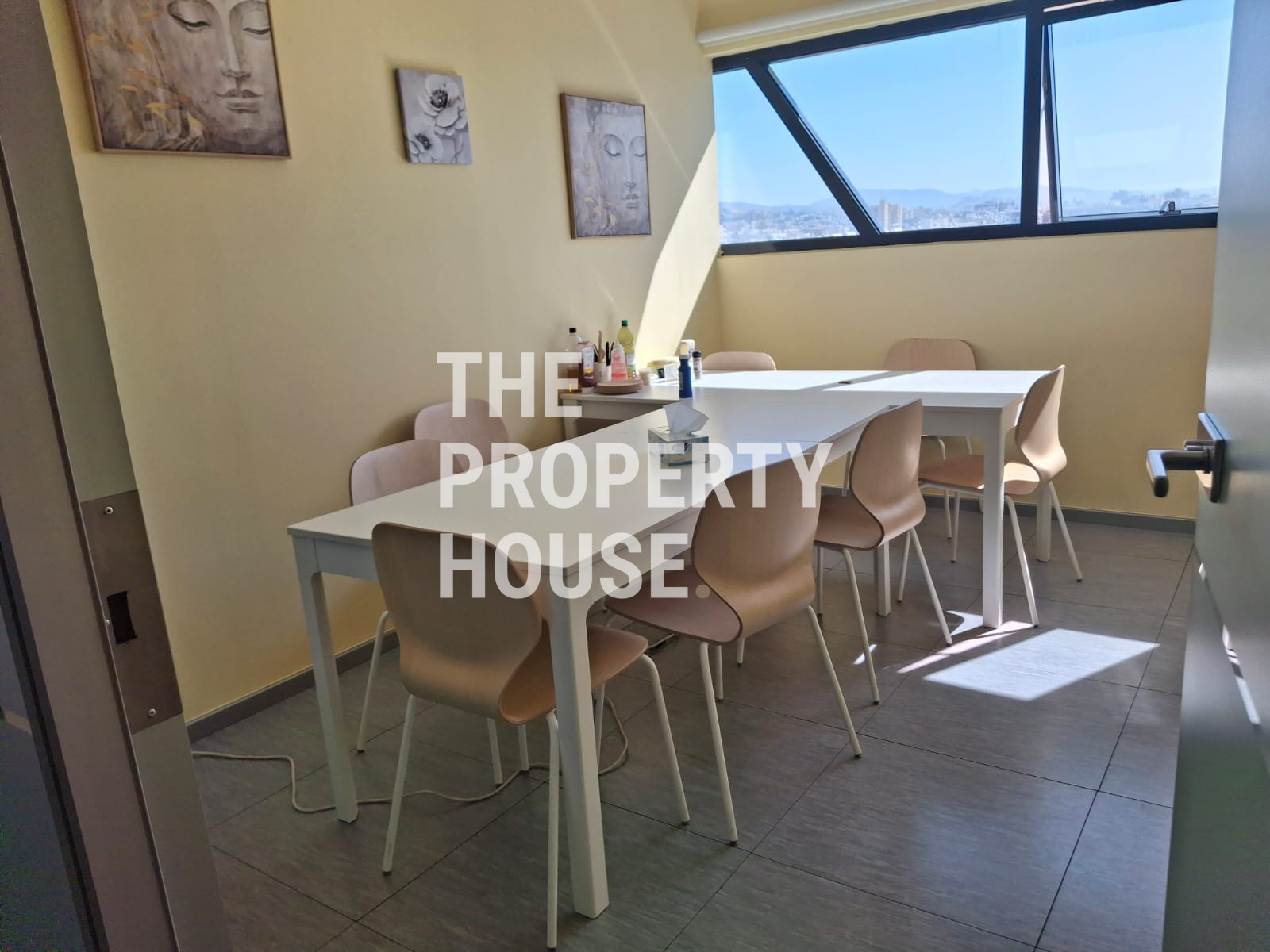 The Property House presents a modern office space offering 340 square meters of internal area, ideally located on the top floor of a gated complex in Mesa Geitonia. With its premium south-facing position, this office boasts panoramic views of the city, mountains, countryside, and the sea, creating an inspiring work environment. The building features an elevator for easy access and is newly built in 2022, ensuring up-to-date design and amenities.