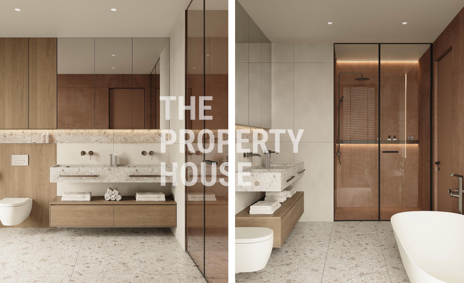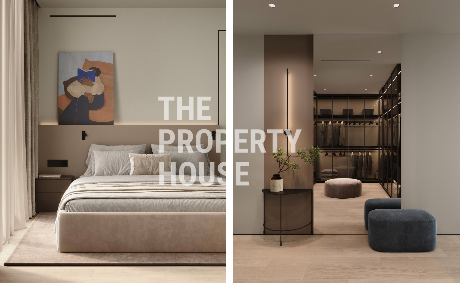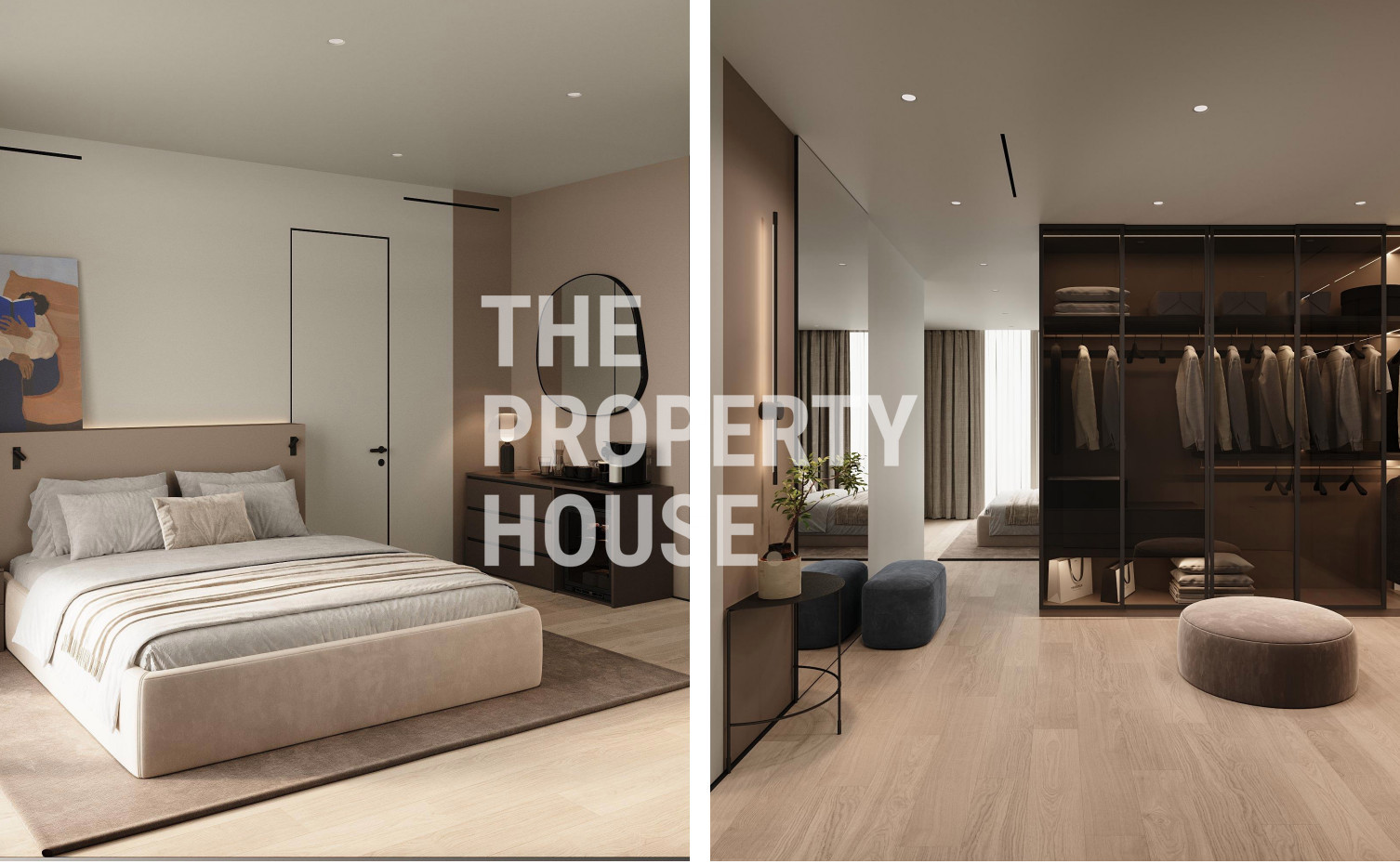 The upper level is dedicated to rest and privacy, with four well-appointed bedrooms. The master suite boasts a walk-in wardrobe and a luxurious en-suite bathroom. A second bedroom also features a private en-suite, while the remaining two bedrooms share a large family bathroom. Each room is spacious, light-filled, and designed with premium materials, offering tranquil views of the surrounding area and mountains.