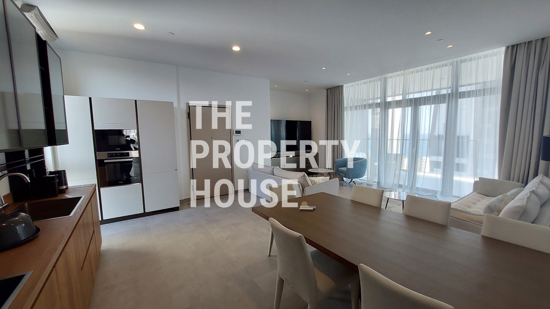 The three bedroom apartment is exquisitely furnished with high end furnishings and appliances.