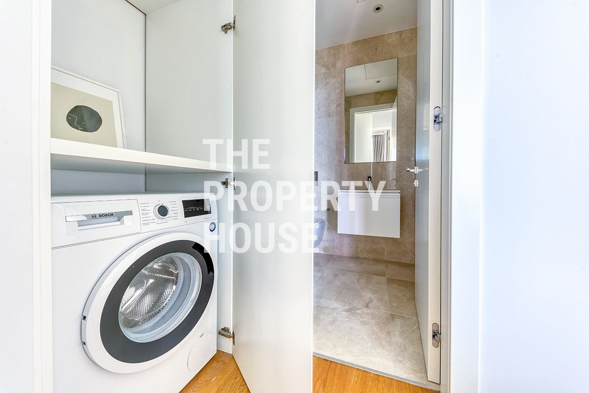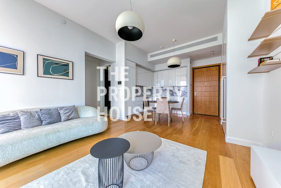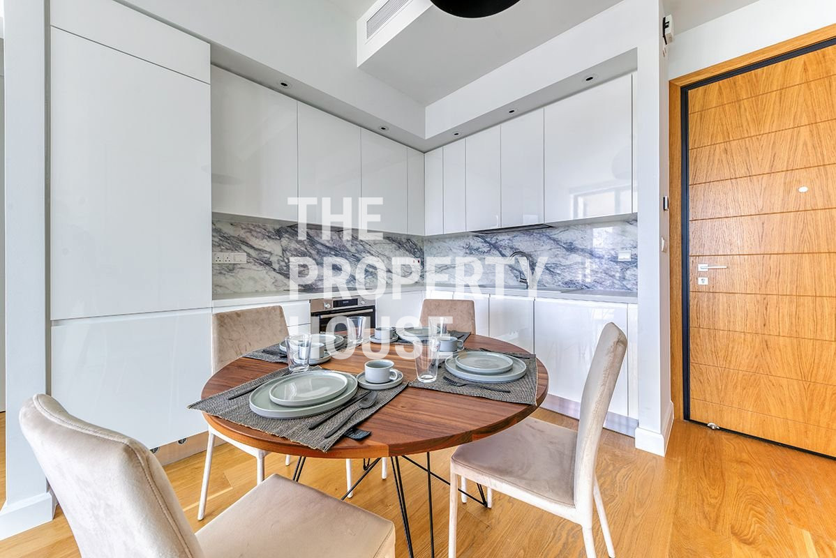 The luxurious apartment features an open plan living, dining and kitchen area, a spacious veranda, a bedroom and a bathroom. Rented with high-end furniture and electrical appliances, the apartment has underfloor heating and VRV central air conditioning.